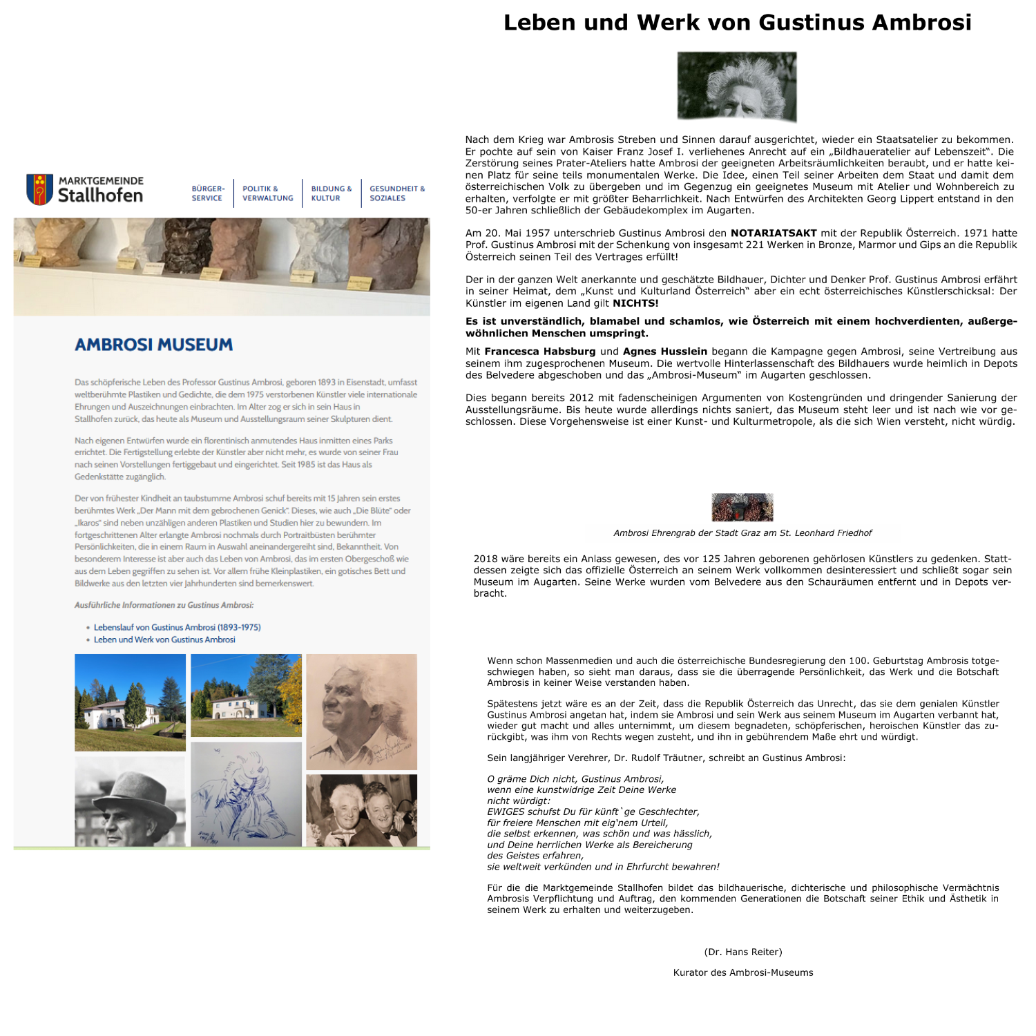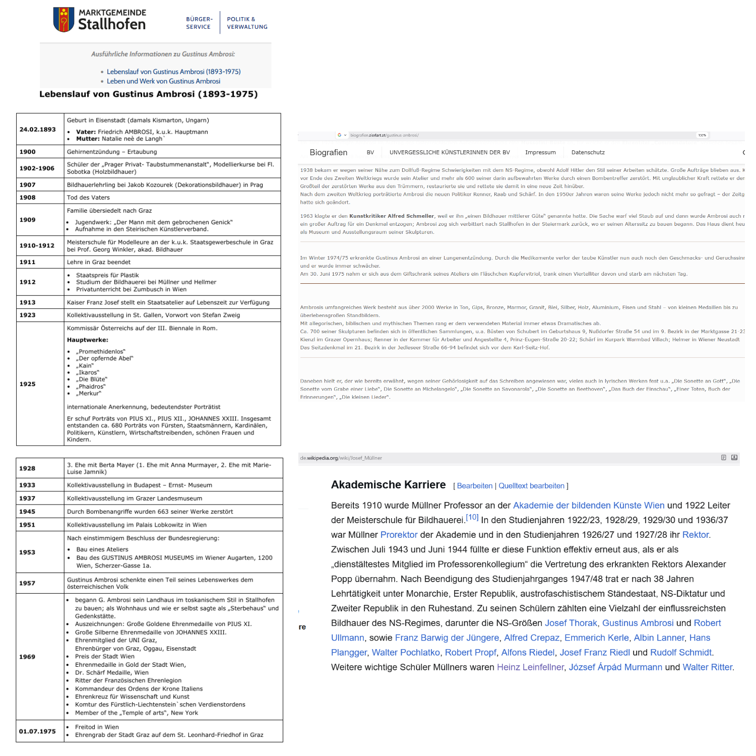 „Es ist keine direkte Verbindung von Gustinus Ambrosi zu einer Grabstätte auf einem Villacher Friedhof in den Daten enthalten“, so nach den erhaltenen KI-Daten, aber wer sich außhalb der KI-Realität und also in der Wirklichkeit informiert, wird beispielsweise das erfahren: