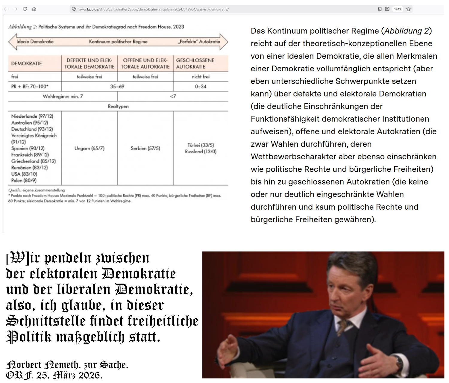 zu erfahren werden braucht, wie seinerzeit, als die Wirklichkeit mit einer Welt oder die Welt mit einer Wirklichkeit sich begnügte, daß er etwa gemäß „Geschäfts- und Personaleinteilung – Stand 1. März 2026“ im ÖVP-Kabinett von einem christschwarzen oder christtürkisen Minister Dr. Wolfgang Hattmannsdorfer, in dessen Vertetung einen „Staatspreis Consulting 2025“ zu vergeben ihm eine „Ehre“, oder, daß er „Redenschreiber für Rot und Blau“ und gar viel weiteres noch von ihm zu erfahren ist, und das alles davon erzählt, als wäre Österreich die Blaupause der KI, wie fabelhaft es in Österreich immer schon verstanden wurde, eine ganz eigene Weltwirklichkeit zu erzeugen, in der beispielsweise ein Roland Weinert ein Mann für fast alle Parteien — und alle zusammen haltungsgelenkig, die Parteien und ein Mann wie etwa Roland Weinert, wenn er beispielsweise