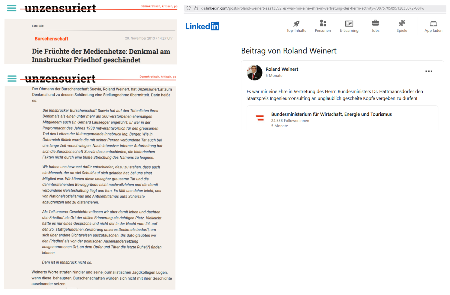 Der Obmann der Burschenschaft Suevia, Roland Weinert, hat Unzensuriert.at zum Denkmal und zu dessen Schändung eine Stellungnahme übermittelt. Darin heißt es: