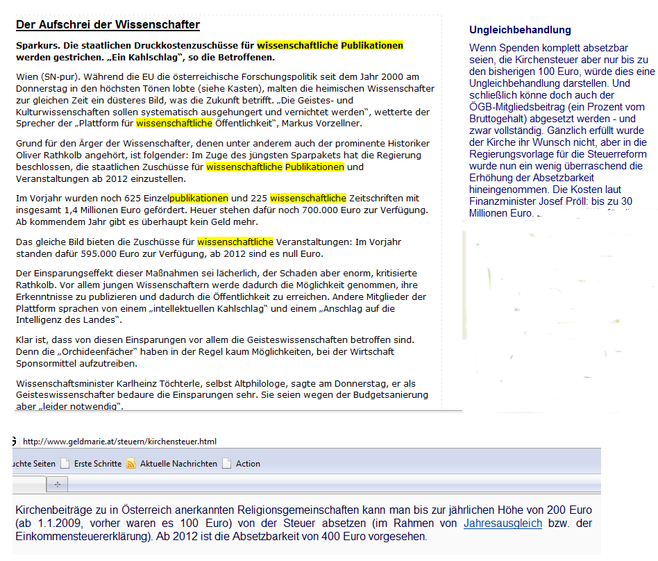Es wird, wie gelesen werden kann, die komplette Einstellung staatlicher Förderungen ab 2012 mit Budgetsanierung argumentiert. Selbstverständlich bedauert das Karl-Heinz Töchterle, aber wegen der Budgetsanierung sei das leider notwendig …