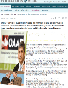 Der auch einmal ÖAAB-Obmann gewesene Vizekanzler, der sich die kleinen Leuten in der Hinterbrühl anschaut, hat den Eindruck, die Damen an den Kassen können mit der Bezahlung nicht völlig unzufrieden sein und der Oberste Gerichtshof fällte eine Grundsatzentscheidung, aber nicht über Zufriedenheit und Unzufriedenheit, sondern, daß eine Arbeitnehmerin an der Kassa in einem Supermarkt zu niedrig eingestuft ist, ihr zu wenig bezahlt wird.