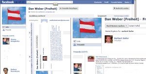 Es wurde also ein Rechtsaußen ausgeschlossen, aus einer Partei, mit der Werner Königshofer weiter vieles verbindet, zum Beispiel der Freundeskreis von Dan Weber auf der Plattform Facebook … Dr. Martin Fritzl wird Dan Weber nicht kennen, freiheitliche Abgeordnete hingegen schon, und nicht nur, wie hier nachgelesen werden kann, Norbert Hofer … Ob Dan Weber ebenfalls ein freundliches Gesicht hat, kann nicht gesagt werden, weil er es vorzieht, wie gesehen werden kann, die österreichische Fahne als sein Portrait …