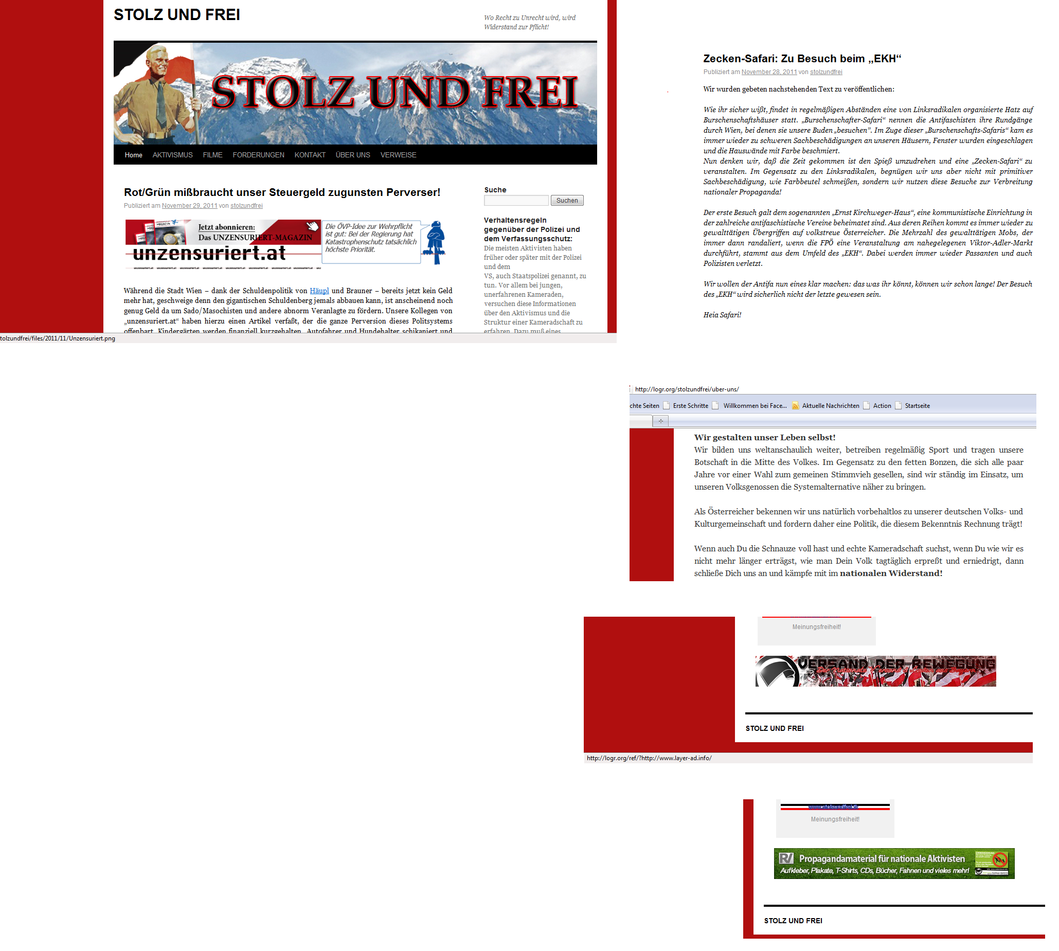 „Stolz und Frei“ ist wiederum eine dieser Sites, die hier nur aus einem einzigen vertretbaren Grund zum Thema werden kann, weil, in diesem Fall, die Frage interessiert, die den freiheitlichen Abgeordneten von „Unzensuriert zu stellen ist, auf welche Zahlungsart wird die Werbung für „Unzensuriert.At“ auf „Stolz und Frei“ beglichen, und wie teuer kommt ihnen die Werbung auf dieser Site.