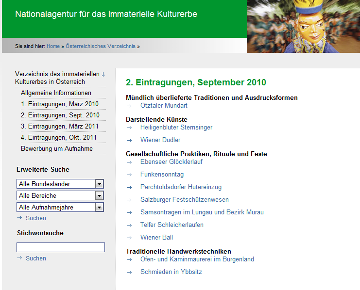 Bewerbung um Aufnahme einer Tradition in das Nationale Verzeichnis des immateriellen Kulturerbes in Österreich