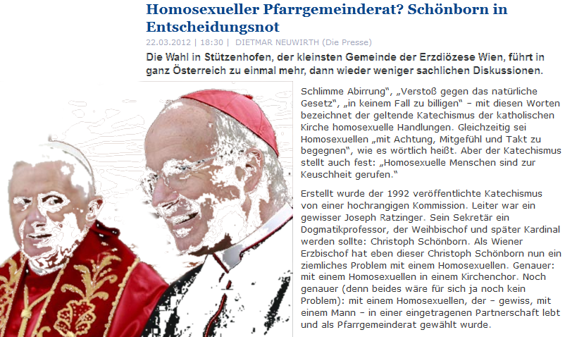 Die Presse erinnert an den 1992 erstellten Katechismus unter der Leitung von Ratzinger und seinem sekretärialen Schönborn …