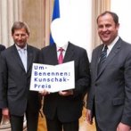 Und diese Umbenennung findet ihre christschwarzen Gegner und Gegnerinnen, läßt auch einen Gesinnungsbund zwischen Christschwarzen und Freiheitlichen schließen, der gemeinsam gegen diese Umbenennung auftritt, an der Spitze wieder Andreas Khol, dessen Urteile sind vielleicht legendär, aber richtig sind sie deshalb nicht. Seinerzeit sprach Andreas Khol von Karl-Heinz Grasser, um ein Beispiel zu nennen, von einem „Ehrenmann“, wie er zur Zeit davon spricht, diese Umbenennung erinnere ihn, Andreas Khol, an „1984“ …