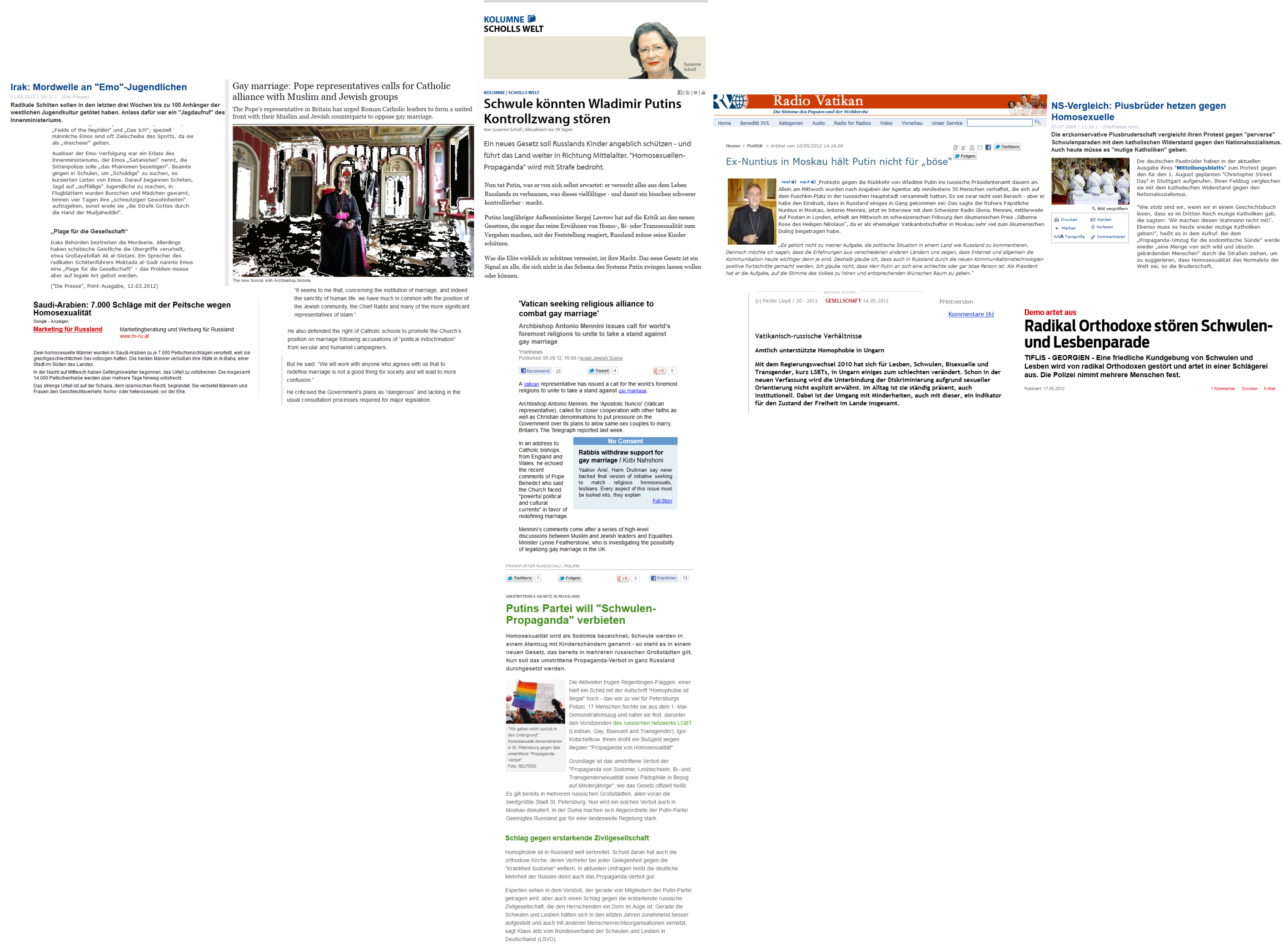 Und wenn Sie diese Berichte aufmerksam lesen, können Sie bereits feststellen, es ist keine Parteinahme für homosexuelle Menschen im besonderen, weil es den Angestellten der Organisierten Glauben nicht einzig darum geht, homosexuellen Menschen Rechte zu verweigern und gegen homosexuelle Menschen lebensbedrohend zu hetzen …