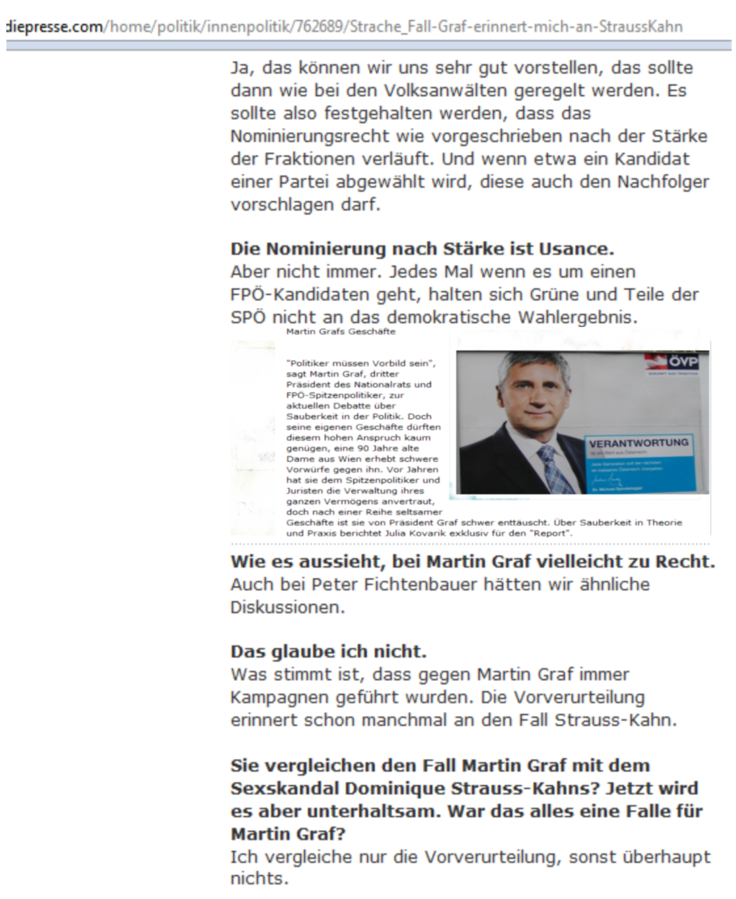 Im Gegensatz zu Rainer Nowak, der das Interview mit Heinz-Christian Strache führte, weiß der zurzeitige Obmann sehr genau, welche Diskussionen auch ein Peter Fichternbauer als freiheitlicher Kandidat beispielsweise für die Position eines Dritten Nationalratspräsidenten herausfordern würde, aufgrund seiner Tätigkeiten und Aussagen -, den Stoff für Diskussionen produziert stets das freiheitliche Personal, ohne diesen Stoff würde es keine Diskussionen geben …