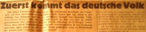 „Zuerst“ -, ein Wort, das Jahrzehnte später wieder Programm wurde, in Österreich, 1993 mit dem „Ausländer-Volksbegehren „Österreich zuerst“ von Dr. Jörg Haider …Und seit damals ist dieses freiheitliche „Zuerst“ in allen Farbschattierungen von Blau bis Blaßblau (vulgo Orange) Programm geblieben, und die verursachten Schäden müssen wieder die Anderen beheben, wird beispielsweise allein an Kärnten gedacht, an die Verbindlichkeiten in Milliardenhöhe für …