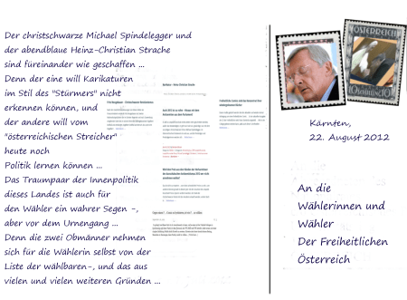 Michael Spindelegger und Heinz-Christian Strache – Traumpaar für Wähler und Wählerinnen Leopold Kunschak – „österreichischer Streicher“ Hinaus mit dem Antisemiten … Könnte gerufen werden, aber von wem – in Österreich? Christschwarzer Revisionismus Was Michael Spindelegger und Heinz-Christian Strache verwechselbar macht – Lange mit Dr. Martin Graf, auch Gespräche Freiheitliche Comics Freiheitliche Realitätsumdrehung Teilen mit: Klick, um auf Tumblr zu teilen (Wird in neuem Fenster geöffnet) Tumblr Klick, um auf Pinterest zu teilen (Wird in neuem Fenster geöffnet) Pinterest Klick, um auf Facebook zu teilen (Wird in neuem Fenster geöffnet) Facebook Klicken, um einem Freund einen Link per E-Mail zu senden (Wird in neuem Fenster geöffnet) E-Mail Klick, um auf Reddit zu teilen (Wird in neuem Fenster geöffnet) Reddit Klicke, um auf X zu teilen (Wird in neuem Fenster geöffnet) X Klick, um auf LinkedIn zu teilen (Wird in neuem Fenster geöffnet) LinkedIn Klicken zum Ausdrucken (Wird in neuem Fenster geöffnet) Drucken Klicken, um auf WhatsApp zu teilen (Wird in neuem Fenster geöffnet) WhatsApp Klicken, um auf Telegram zu teilen (Wird in neuem Fenster geöffnet) Telegram Mehr Klick, um auf Pocket zu teilen (Wird in neuem Fenster geöffnet) Pocket Gefällt mir Wird geladen … Ähnliche Beiträge