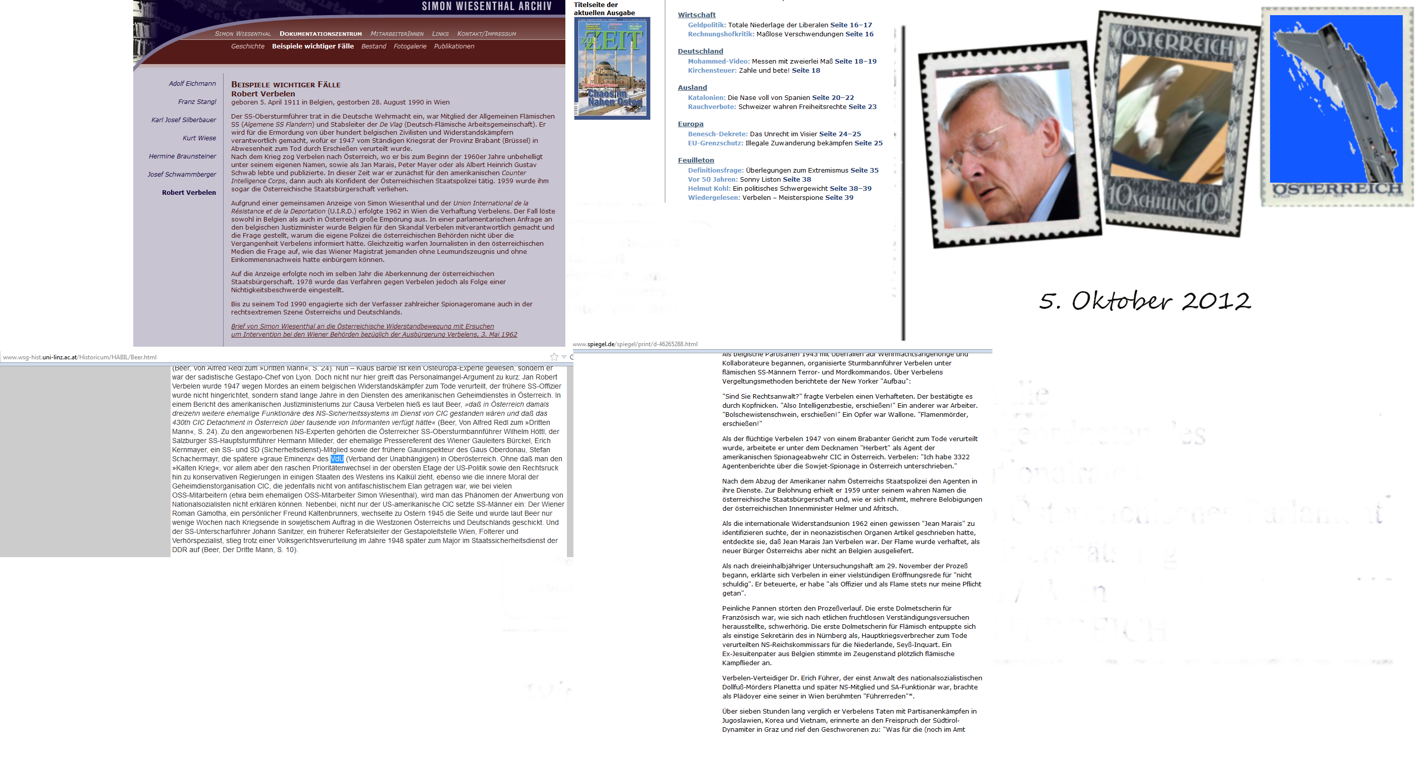 NS Der „Spiegel“ beschrieb 1966 den Umgang der österreichischen Justiz mit Kriegsverbrechern der totalitären nationalistischen Massenmord- und Massenverbrechendiktatur des deutschen Reiches, nicht nur über Robert Verbelen … Es wird auch der von einem freiheitichen Gemeinderat berichtet, der in zweiter Instanz …