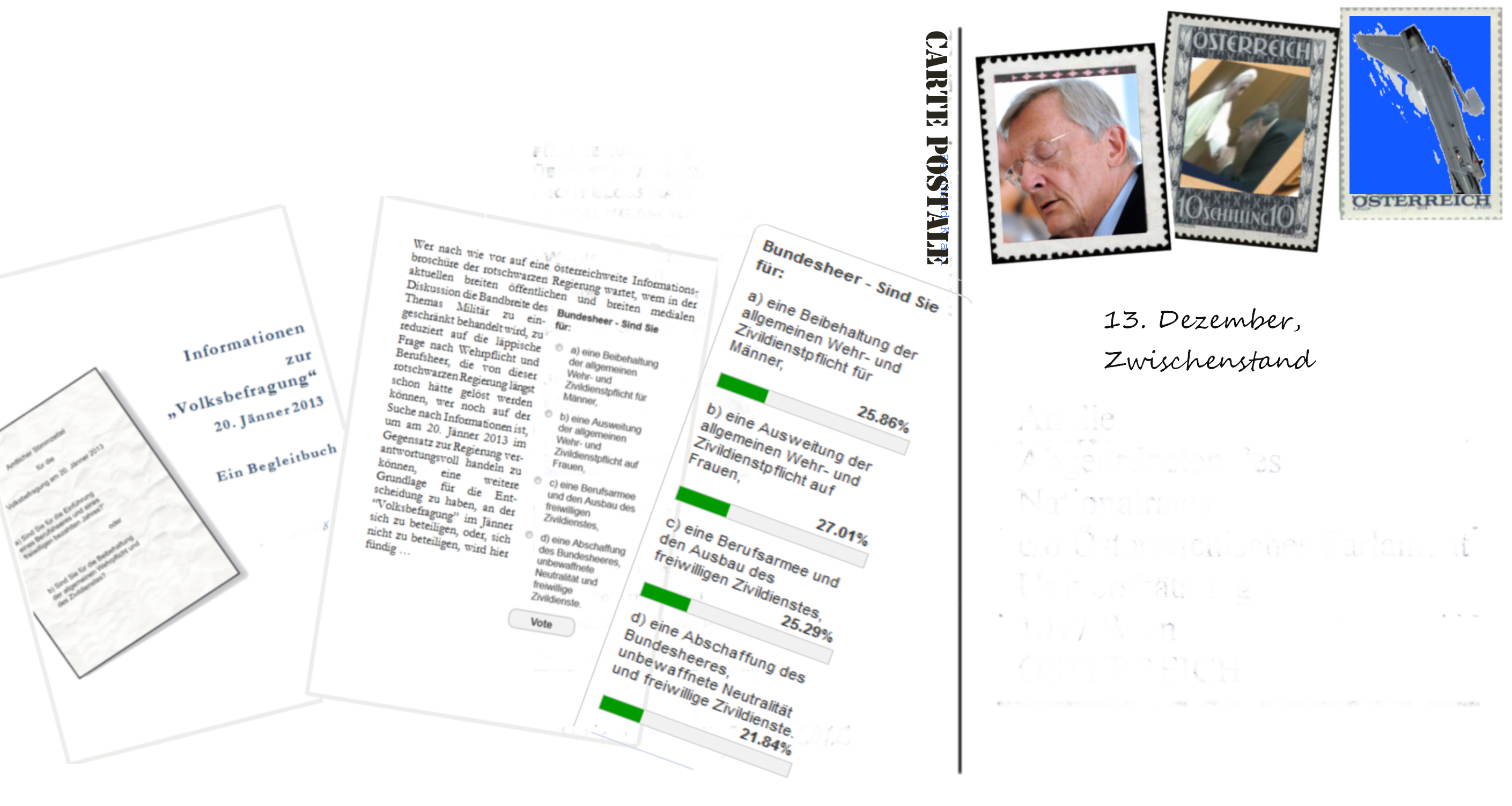 Weitere Informationen zur „Volksbefragung“ zu Wehrpflicht und Berufsheer und auch zum Warum einer Umfrage mit zumindest vier Varianten finden Sie für Ihre Abstimmung im Buch