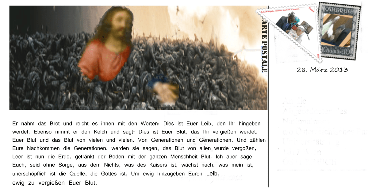 cène Veröffentlicht März 29, 2013 in 3614 × 1926 in Wessen Leiber hinzugeben, wessen Blut zu vergießen ← Zurück Weiter →