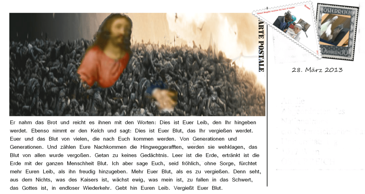 the opening supper Veröffentlicht März 29, 2013 in 2905 × 1548 in Wessen Leiber hinzugeben, wessen Blut zu vergießen ← Zurück Weiter →