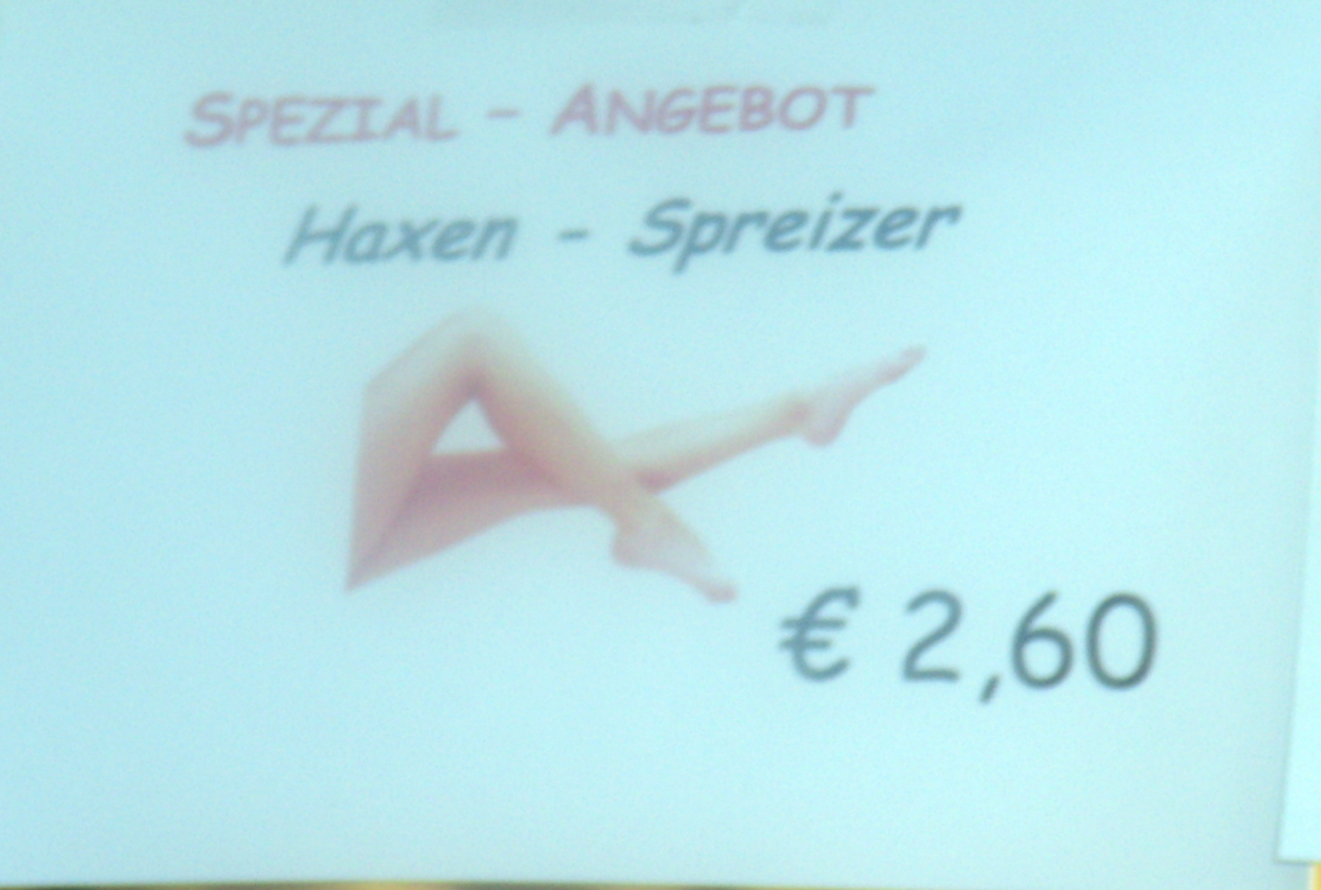 Erwähnenswert ist darüber hinaus auch noch, daß sowohl von einer Verkäuferin in ihrem roten Sozialdemokratiegewerkschaftsshirt als auch von einem Verkäufer in seinem roten Sozialdemokratiegewerkschaftsshirt lediglich mit Schweigen und Unverständnis reagiert wurde, als sie darauf angesprochen wurden, ob es gerade für eine „Fraktion Sozialdemokratischer GewerkschafterInnen“ tatsächlich passend sei, einen „Haxen – Spreizer“ anzubieten, noch dazu, um es ja unmißverständlich zu machen, worum es dabei geht: beworben mit nacken Frauenbeinen …