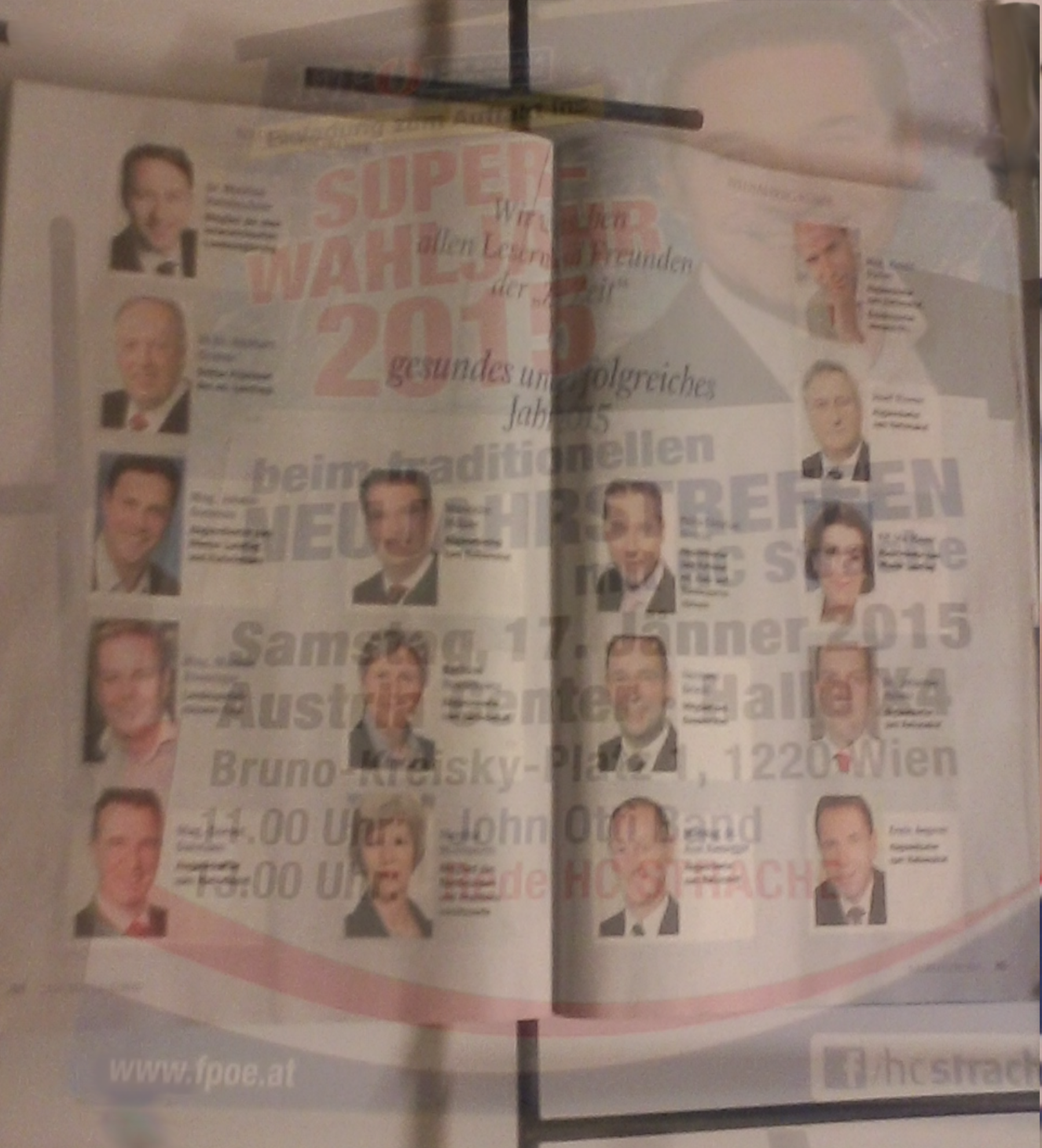Wie Sie der Collage entnehmen können, wünschen in der dieswöchigen Nummer wieder recht viele gewählte Mandatare und Mandatarinnen der identitären Gemein-Schaft „allen Lesern und Freunden der ‚Zur Zeit‘ ein gesundes und erfolgreiches Jahr 2015“ … Darunter sind auch welche, die beispielsweise auch im letzten Jahr für die ZZ Proben ihres Schreibkönnens und ihrer Geistesfähigkeiten abgaben.