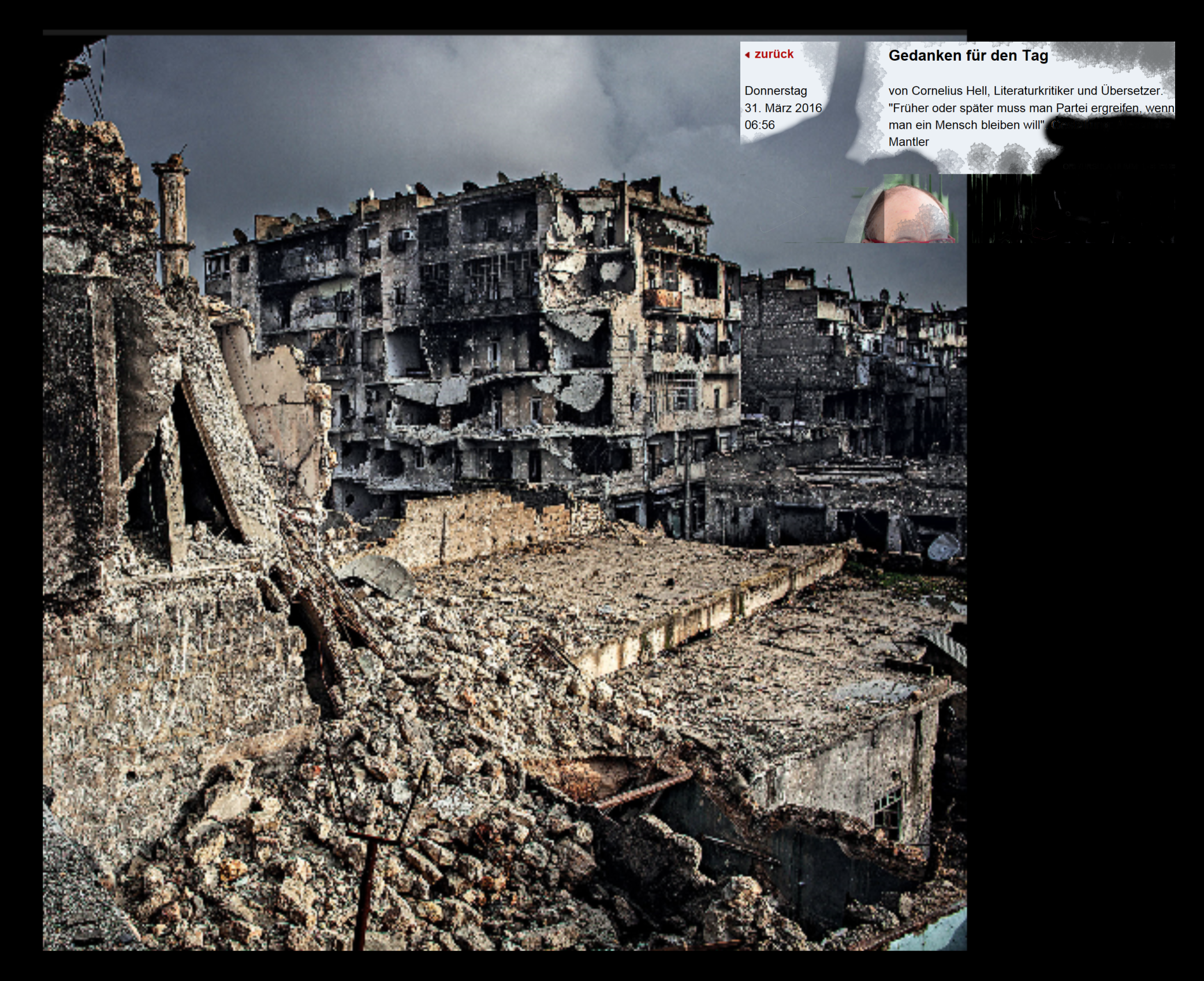 Ja, was für eine großartige Leistung, Antisemitismus und Rassismus in „glasklaren Sätzen“. Und wie ein Süchtiger preist Cornelius Hell seinen Stoff, und der österreichische Rundfunk sein Gasse, in der er in einer schmuddeligen Ecke seinen gestreckten und also miesen Stoff feilbietet. Es könnte gemeint werden, die Welt ist schon genug voll mit diesem Stoff, übervoll, aber Süchtige gieren nach immer mehr Stoff, und so wird auch Hell seine Abnehmer und Abnehmerinnen finden.