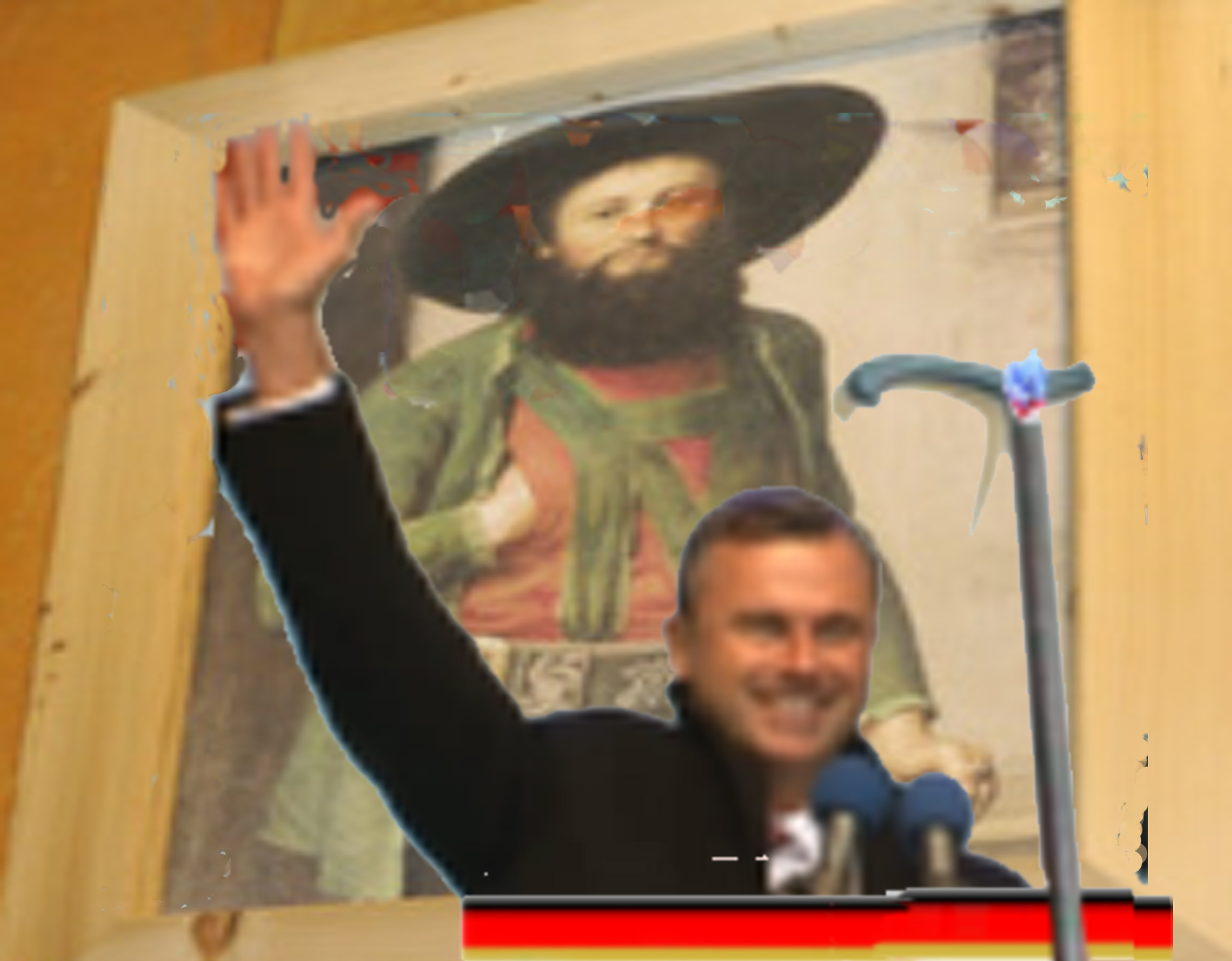 Wer beeinflußt nun recht Norbert Hofer, daß er solche Wörter verwendet? Ist es P_? Nein, dieser berichtet auf FPÖ unzensuriert von der „Invasion der Neger“ aus dem „Kriegsgebiet“. Norbert Hofer ist ein freundlich gesichteter Mann, das Wort „Neger“ würde er nicht verwenden, er sagt „Invasion der Muslime“. Der „Invasion der Muslime“ will Norbert Hofer entgegentreten, diese also „stoppen“. Es sind dieser gar so viele, das kann ein jeder Mensch, der in den Zeitungen die Zahlen liest und dabei vor allem die der letzten Tage, bestätigen, es sind dieser gar so viele, daß manch ein Mensch schon meint, er werde sie alleine nicht zurückhalten und also stoppen können, er werde hierzu schon Hilfe benötigen, ohne Mitnahme seines Gehstockes werde er es dennoch nicht schaffen. Was sich ein einfacher Mann aus der sogenannten Bevölkerung zutraut, also allein und bloß mit seinem Stock die „Invasion der Muslime“zu stoppen, scheint sich ein Mann mit Stock nicht zuzutrauen, bloß eines traut er sich zu, sich auf eine Bühne zu stellen und … Würde er dann wenigstens, wenn er in einem Wirtshausextrastüberl im Hergottswinkerl sitzt, würde er von einem einfachen Mann gefragt werden, seinen Stock borgen, damit dieser allein mit dem hoferischen Stock an die Grenzen eilt, von einer Grenze zur anderen Grenze, die Invasion suchend und dabei schon warnend den Stock schwingend …