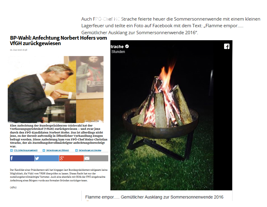 Weil es wieder einmal eine Aufregung gibt, es wieder einmal um einen Funktionär der identitären Parlamentspartei geht. Wieder einmal um ein Zitat. Im Zusammenhang mit den sommerlichen Tänzen um das Feuer. „Flamme empor“.