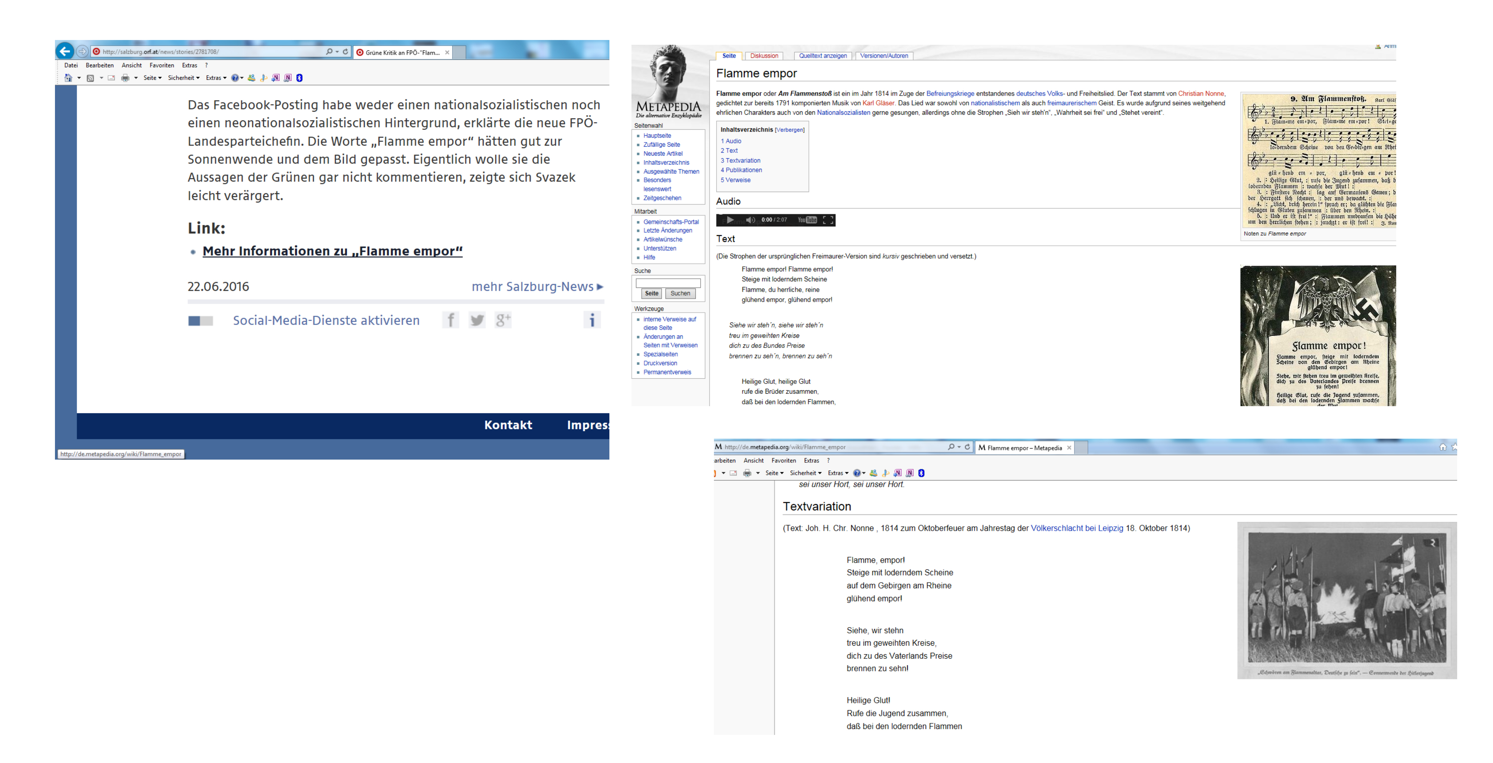 Der Anlaß für den ORF, auf Metapedia zu kommen, einer identitären Parlamentsparteifunktionärin Liebe zum Feuer auf dem Felde, ein Lied, über das gelesen werden kann in