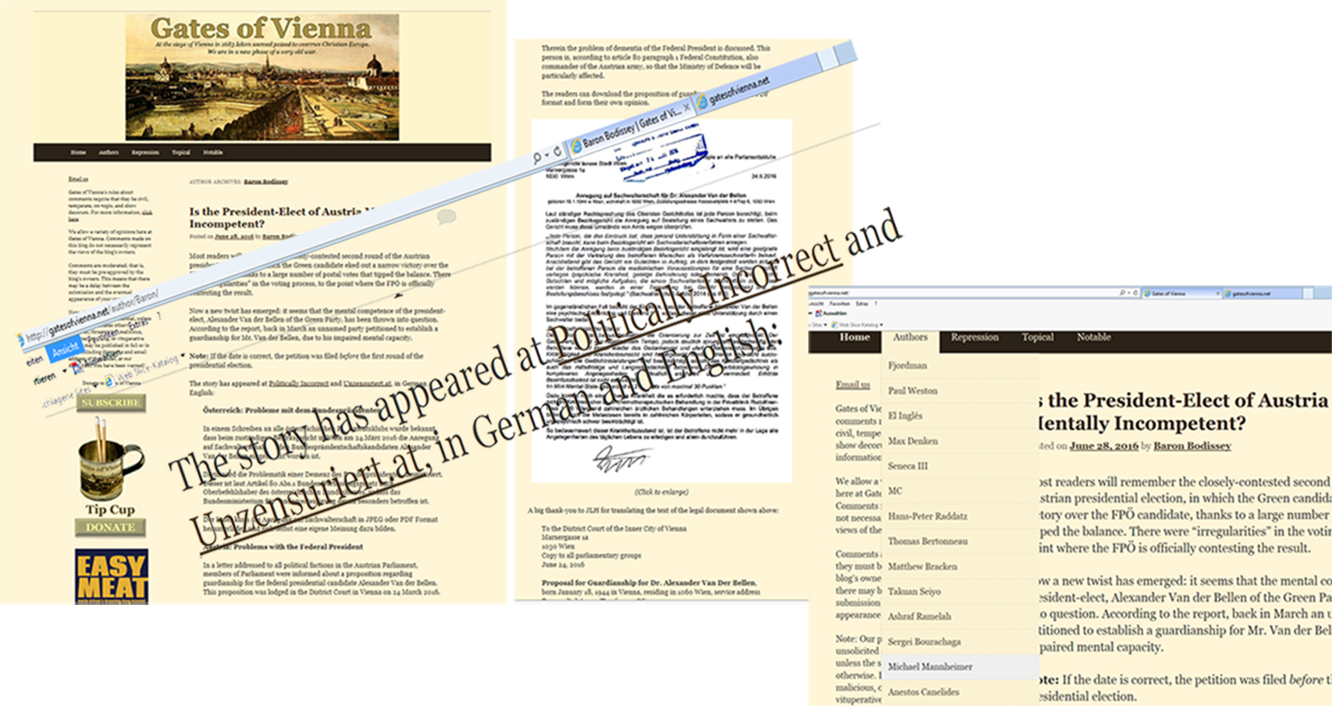 Auf Unzensuriert erschienen. Auf Unzensuriert und PI, schreibt also dieser Autor am 28. Juni 2016 … Und wenn dieses Tor ein wenig aufgestoßen wird, sind gleich Autoren zu finden, die in dieser identitären Parlamentspartei Ansehen genießen, wie Michael Mann…