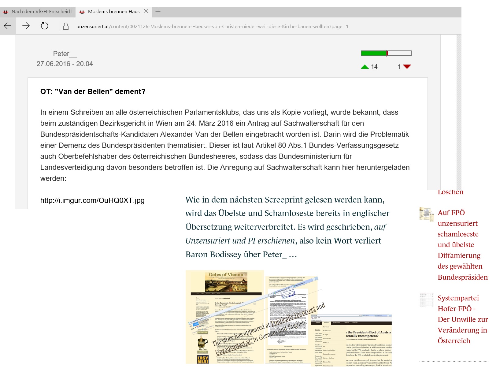 Was hier bereits am 28. Juni 2016 gelesen werden konnte: wie Peter_ am 27. Juni 2016 das Schreiben auf FPÖ unzensuriert beginnt zu verbreiten, wie am 28. Juni 2016 Gates of Vienna schon eine englische Übersetzung bringt, mit dem Hinweis: von Unzensuriert und Politically Incorrect veröffentlicht … ach, wozu es noch einmal aufzulisten, es kann ohnehin alles hier nachgelesen werden.