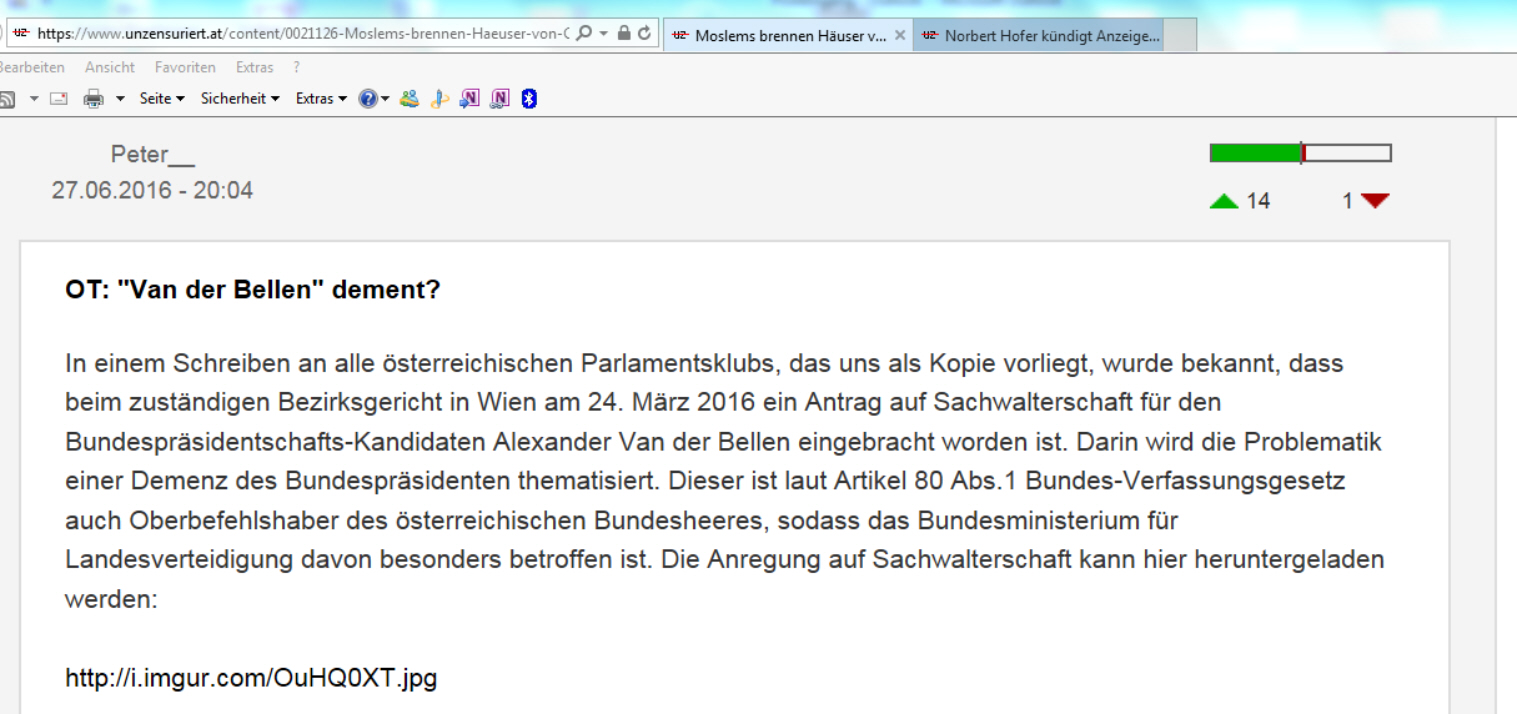Besonders hervorzuheben ist noch, daß dieser Mensch am 3. Juli 2017 auf FPÖ unzensuriert mit der Diffamierung fortsetzen kann, wie gelesen werden kann in Norbert-Hofer-Schreibstaffelkomitee …