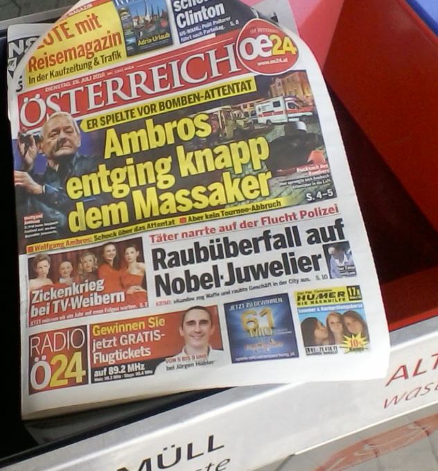 PS Eine andere Überschrift hätte gewählt werden können, vielleicht: Österreich möchte auch seinen Teil vom Terrorkuchen. Aber dann hätte wohl darüber geschrieben werden müssen, wie weit verbreitet das Gefühl der Benachteiligung ist, sogar beim Terror benachteiligt, aber, Herr sei gepriesen, einer aus Österreich, wenigstens einer aus Österreich entging knapp …