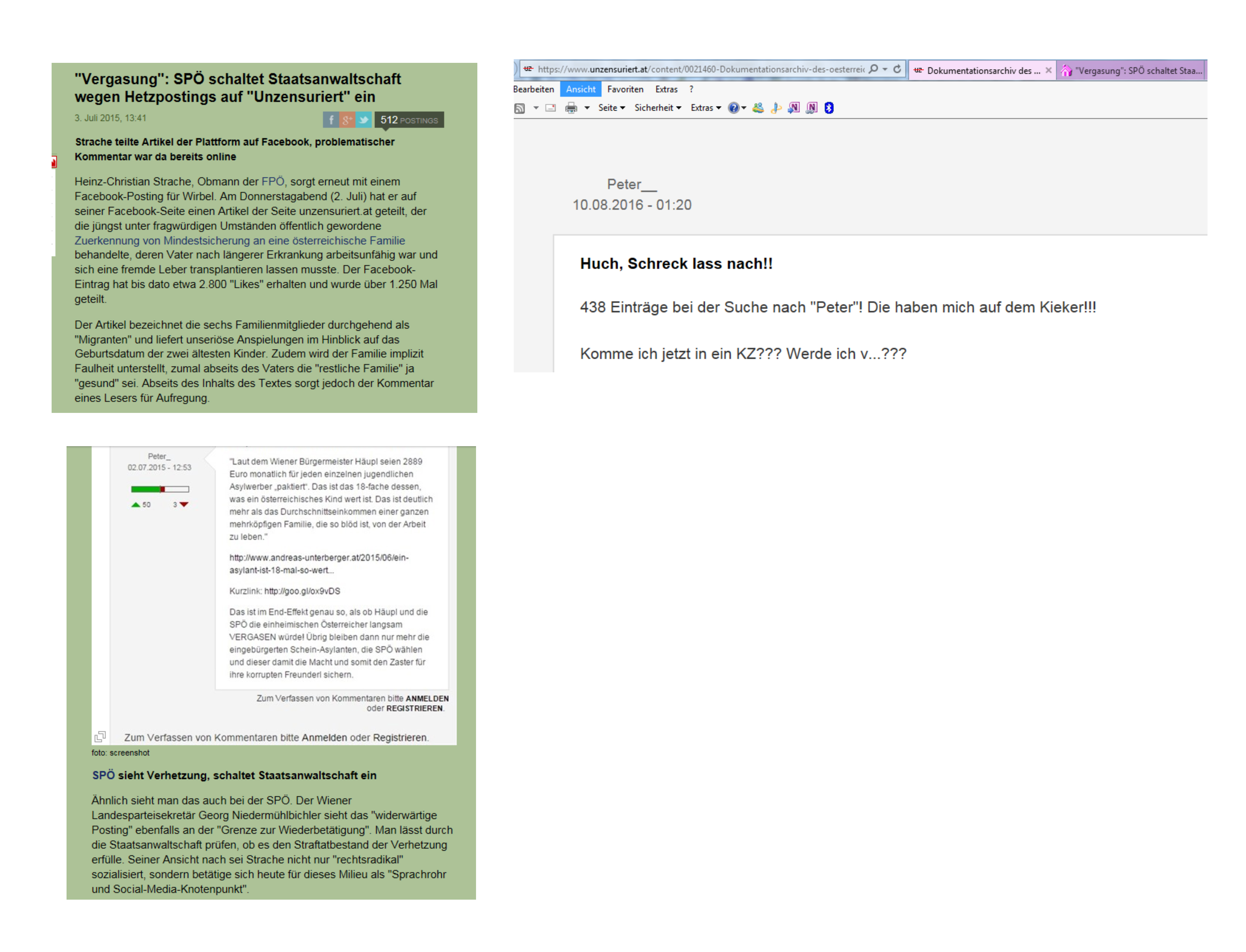 Peter_ und nicht nur Peter_ dürfen als Kommentatoren und Kommentatorinnen bezeichnet werden. Denn FPÖ unzenuriert selbst spricht nicht von Postings, sondern von Kommentaren … Und Peter_ dürfte ein recht besonderer Kommentator sein, denn allenthalben schreibt er seine Kommentare in der dritten Person Mehrzahl, wie beispielsweise auch die oben angesprochene Verleumdung eines bereits gewählten …