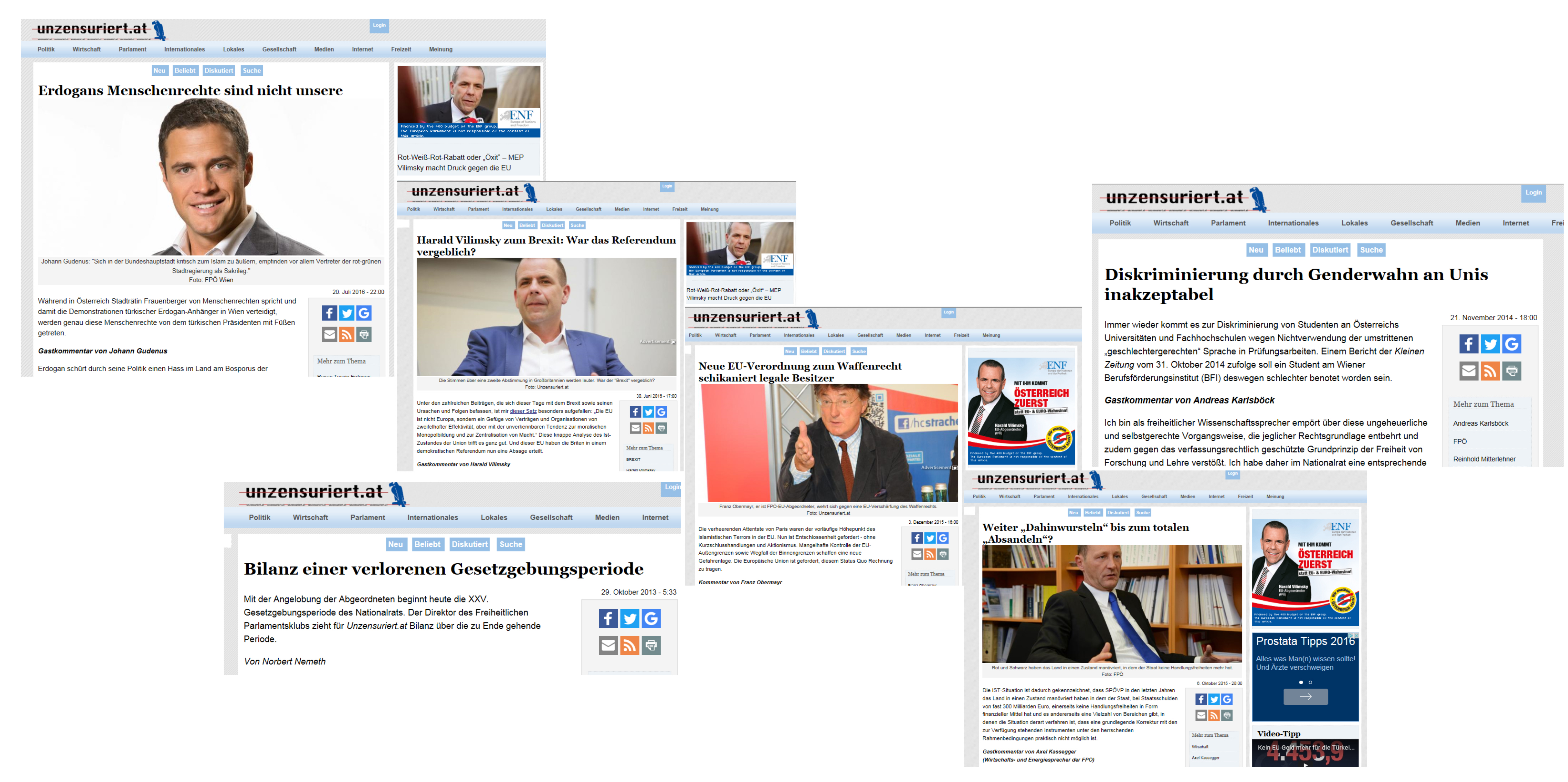 Nationalratsabgeordnete Barbara Rosenkranz als die ausgewiesene „Kolumnistin“ der FPÖ unzensuriert. Das ist der „rechte Rand“ in Österreich. Harald Vilimsky, Abgeordneter im Europäischen Parlament, schreibt über den „Brexit“ auf FPÖ unzensuriert. Das ist der „rechte Rand“ in Österreich.