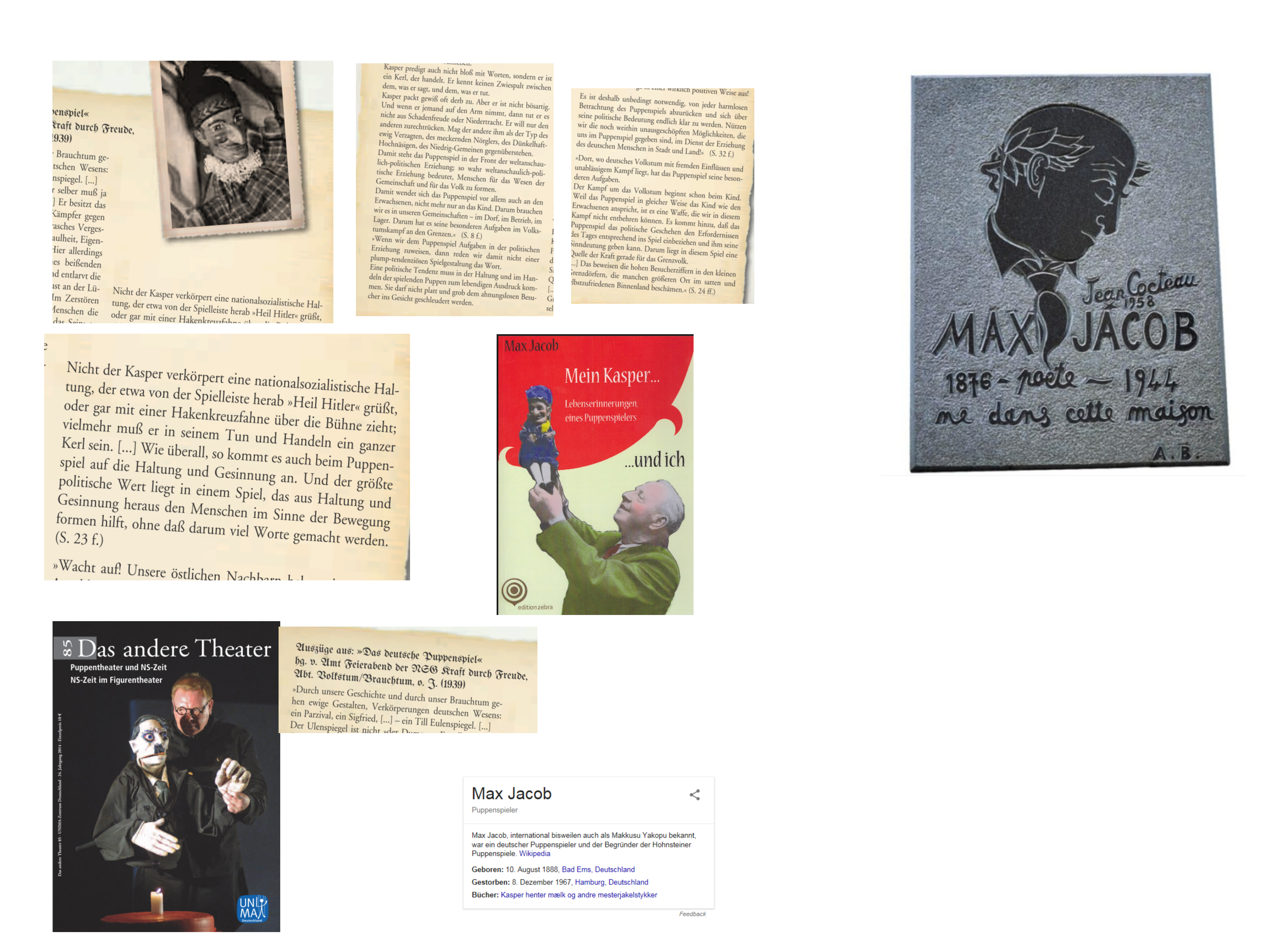 Es gab den Max Jacob, der fuhr mit seinem Kasperl zu den hitlerischen Truppen – auch Mordende brauchen Betreuung, Erholung vom Morden, Ablenkung vom Morden, und menschgemäß auch Motivation zum Weitermorden.