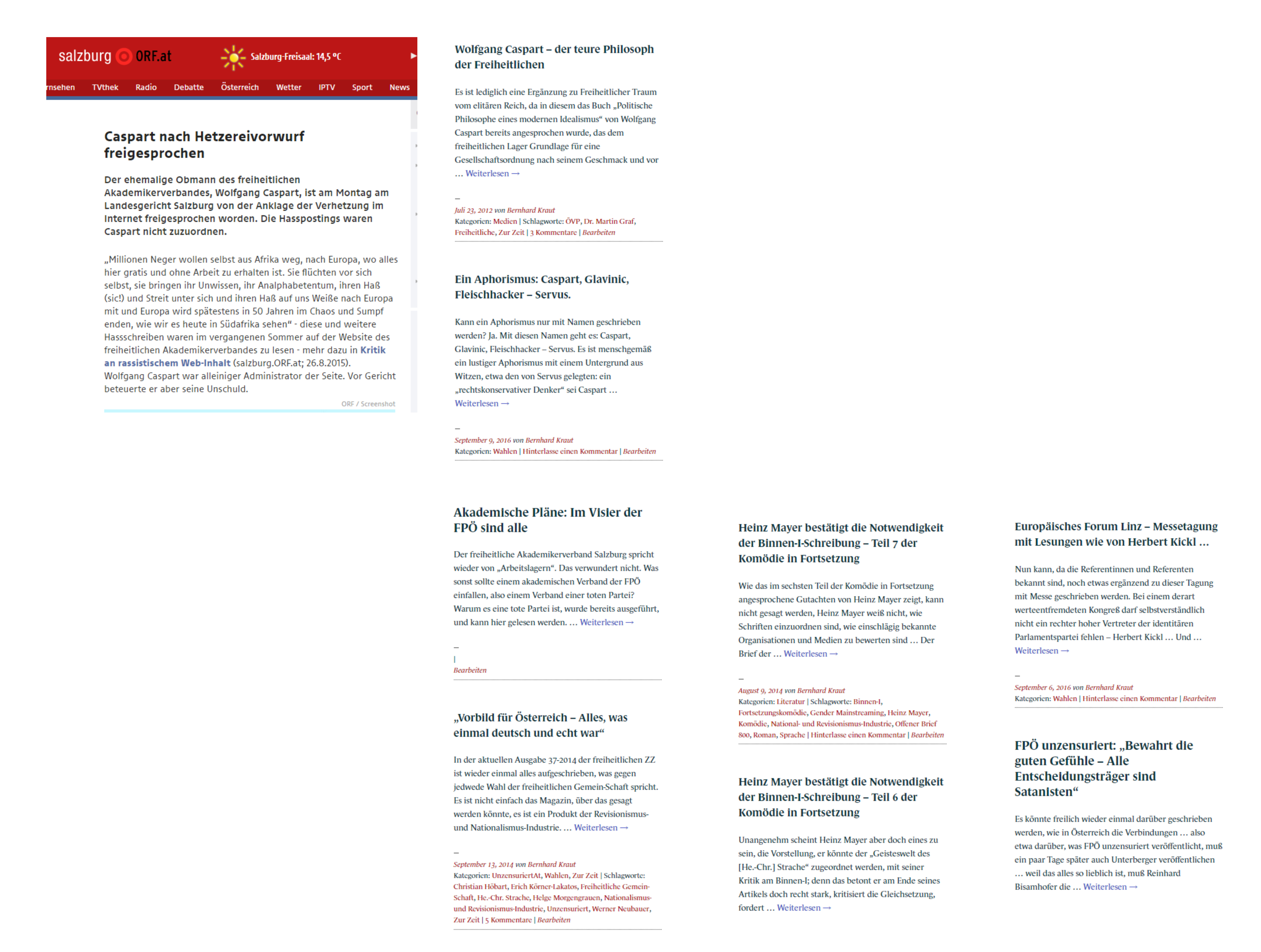 Übrigens, bei dem „Hetzereivorwurf“ ging es auch um „Neger“ … Eine Verurteilung von Wolfgang Caspart wäre doch recht ungerecht gewesen, wenn also er verurteilt worden wäre, während ein anderer Anhänger mit derselben Liebe zu solchen Wörtern durch Einladungen geadelt wird, von einem Mann, den beinahe die Hälfte der Wahlberechtigten in Österreich wählten, weil sie ihn recht gern als Bundespräsidenten gehabt hätten. Aber dieser Mann ist nicht nur ein recht gern bemühter Gesprächspartner für einen Beinahe-Bundespräsidenten, sondern auch für Medien, aber nicht um über „Neger“ oder „Zigeuner“ oder …