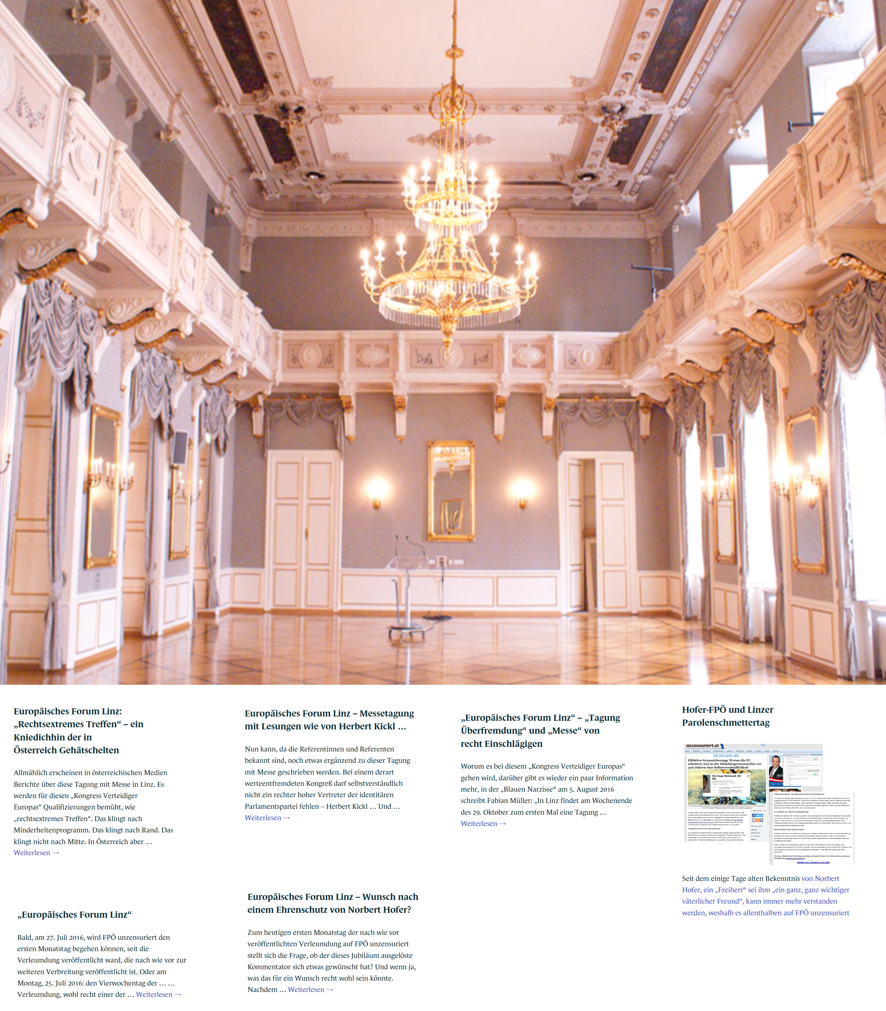 Wie nun zu erfahren ist, wird der Parolenschmettertag im Vorort von Braunau in linzerischen „Prachtsälen“ abgehalten werden, beleuchtet wird dieses Kniedichhin der in Österreich Gehätschelten u.v.a.m. von Herbert Kickl ….