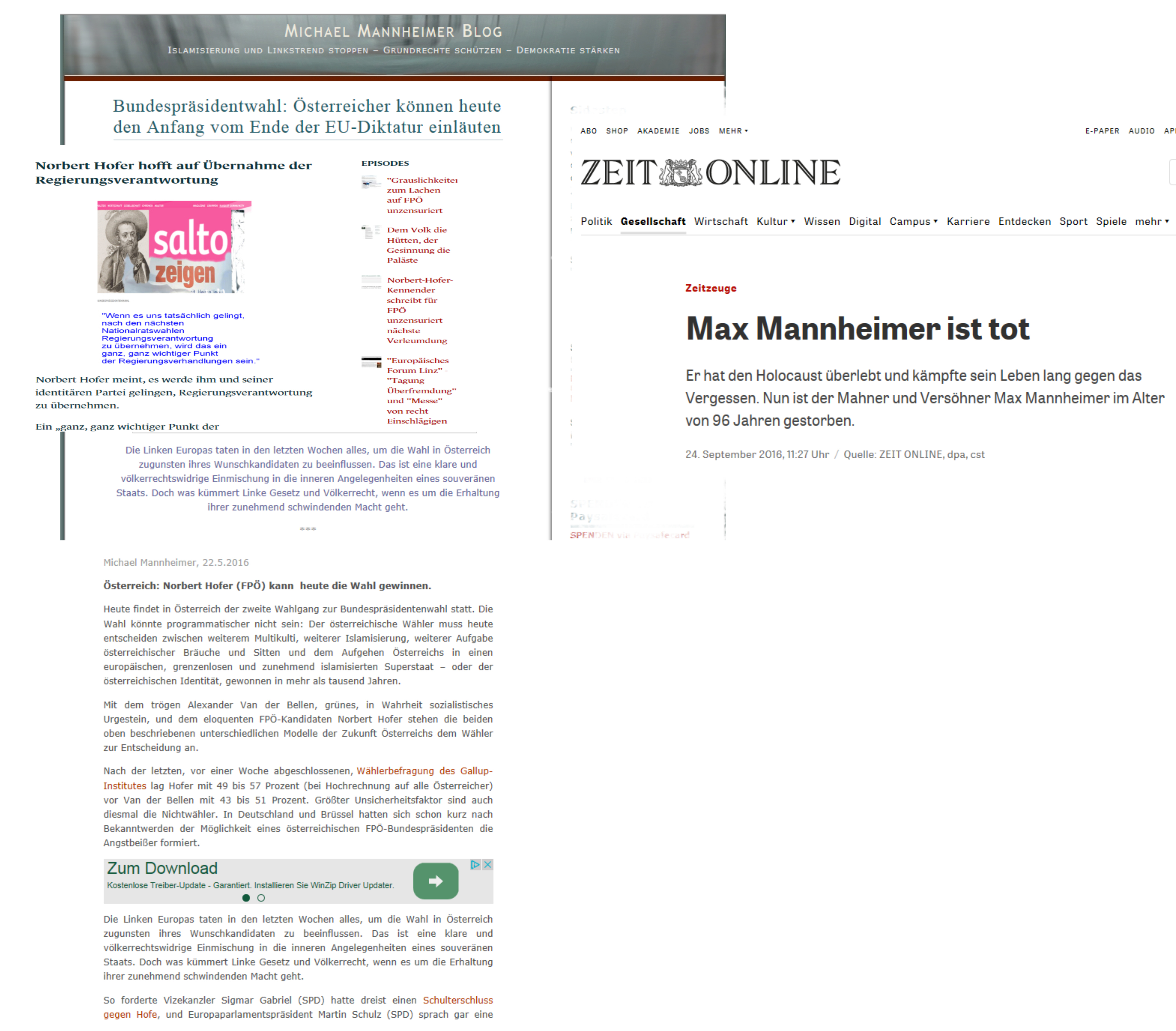 Max Mannheimer ist gestorben. Über ihn wird nun geschrieben, er habe den Holocaust überlebt. Er sei ein Versöhner gewesen. Und dann gibt es noch einen Mannheimer, mit dem Vornamen Michael. Von ihm könnte gesagt werden: seine Weltanschauung ist tot. Er ist ein Unversöhner.