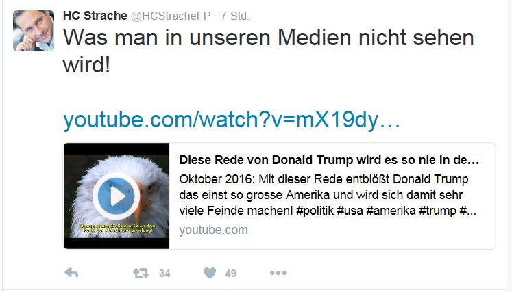 Anders kann die Uncut-Klage und das Klagegechrähe von He.-Chr. Strache nicht verstanden werden, daß eine Rede von Donald Trump „man in unseren Medien nicht sehen wird“ …