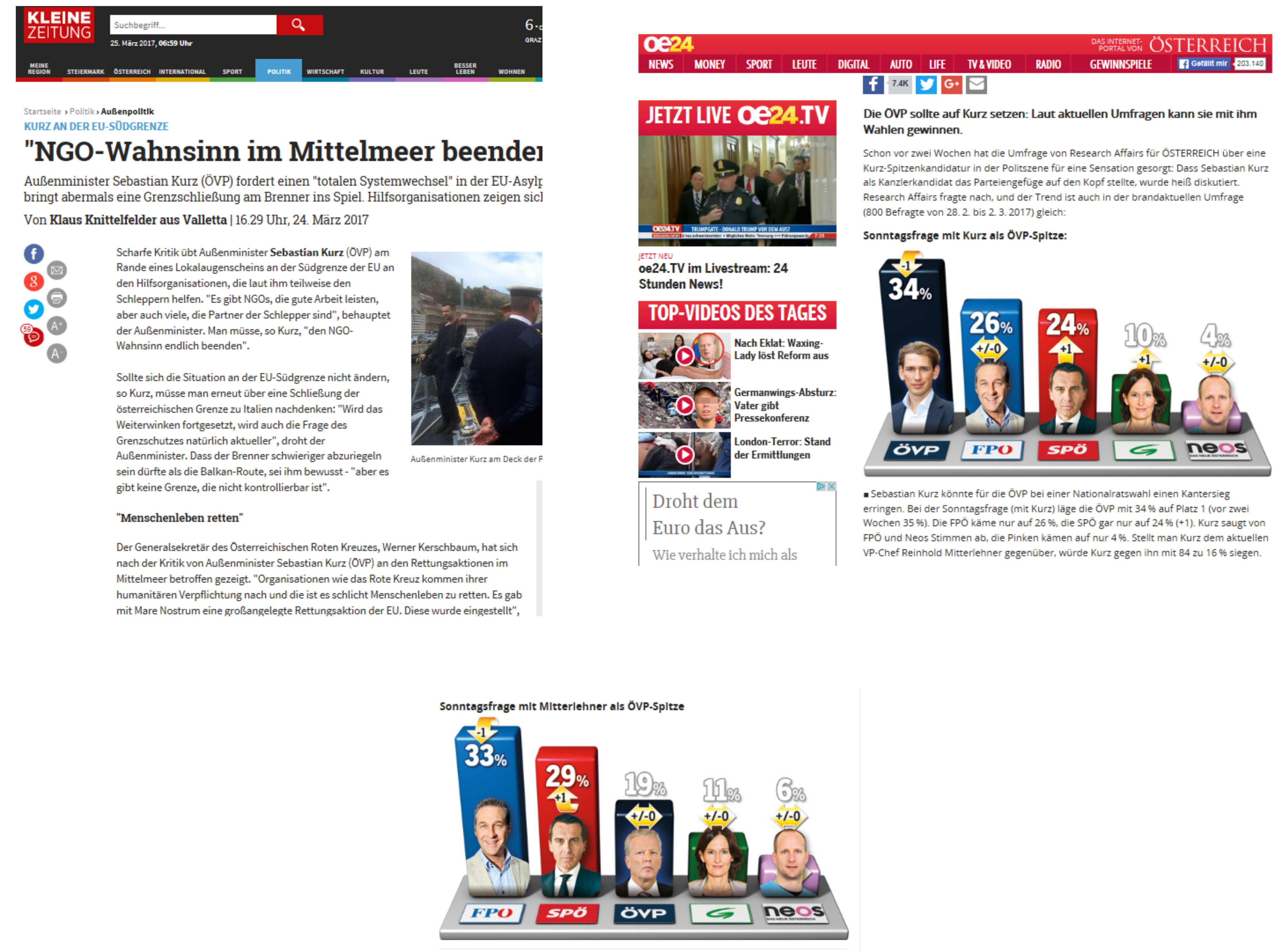 Auch mit Umfragen. Ob er, Kurz, daran ganz unbeteiligt ist, daß es diese ungewöhnlichen Umfragen gibt? Es wird nun seit einiger Zeit abgefragt, wie würde die ÖVP mit einem Parteiobmann Kurz abschneiden. Es ist nicht erinnerlich, daß je noch vor diesem von der ÖVP gezeugten FPler abgefragt wurde, wie würde eine Partei mit ihrem Obmann und zugleich wie würde diese Partei mit einem anderen Obmann in Wahlen abschneiden.
