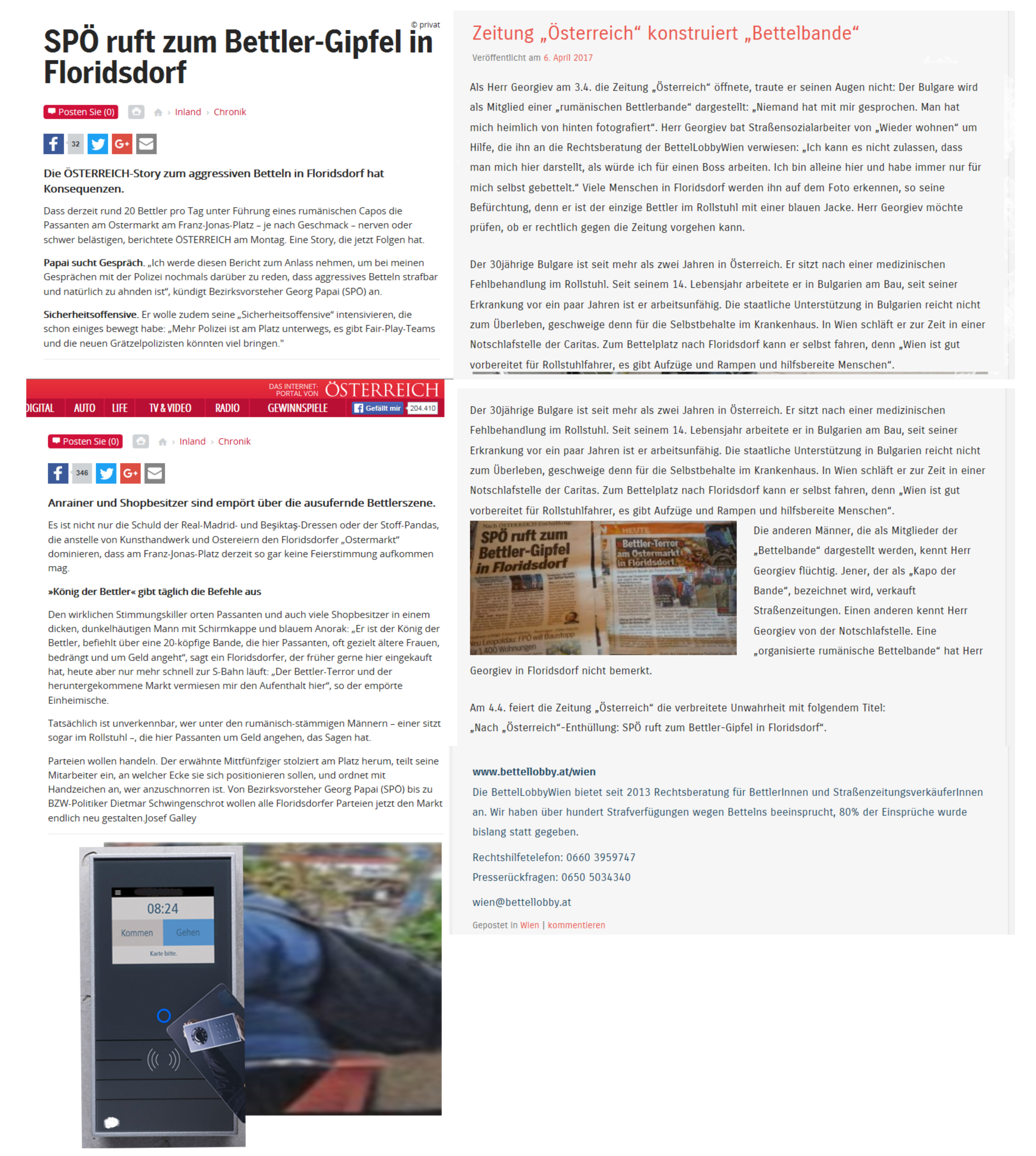Floridsdorf, Österreich. Aus der überall Aufliegenden, der Österreich vertraut und die Österreich teuer ist, war vor einigen Tagen zu erfahren, daß es am Franz-Jonas-Platz eine „Bettlerszene“ gibt.