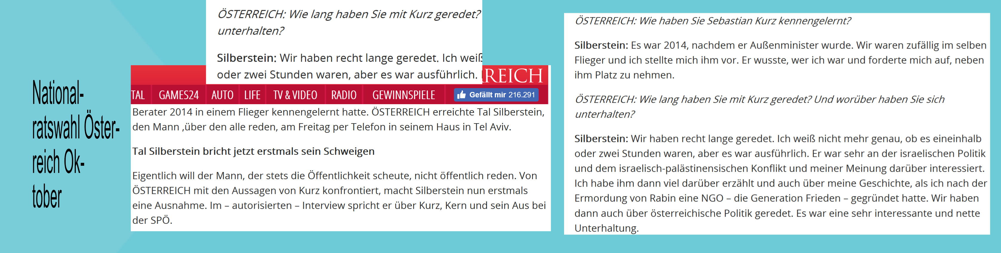 Selbstverständlich kann nicht von allen Parteien gesprochen werden, wenn gesagt wird, das parteipolitische Österreich hätte, wenn es ein Gesicht hätte, das Gesicht von Tal Silberstein. Jedoch die Dichte ist auffällig, wie diese es in einem anderen Land wohl nicht ein zweites Mal gibt …
