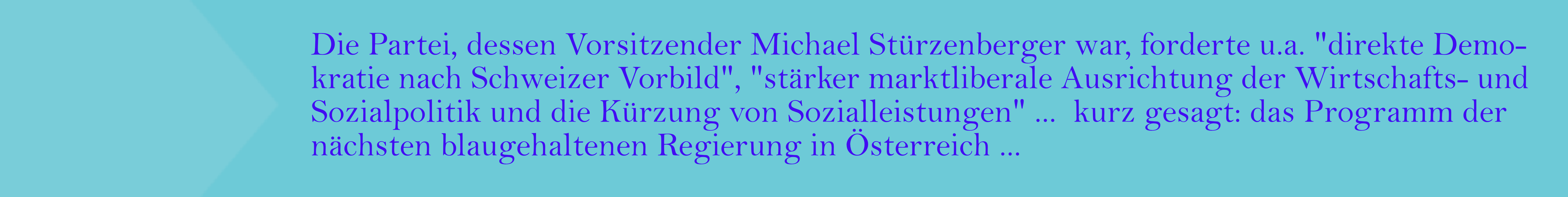Die Partei, dessen Vorsitzender Michael Stürzenberger war, forderte u.a. „direkte Demokratie nach Schweizer Vorbild“, „stärker marktliberale Ausrichtung der Wirtschafts- und Sozialpolitik und die Kürzung von Sozialleistungen …“ — kurz gesagt: das Programm der nächsten blaugehaltenen Regierung in Österreich …