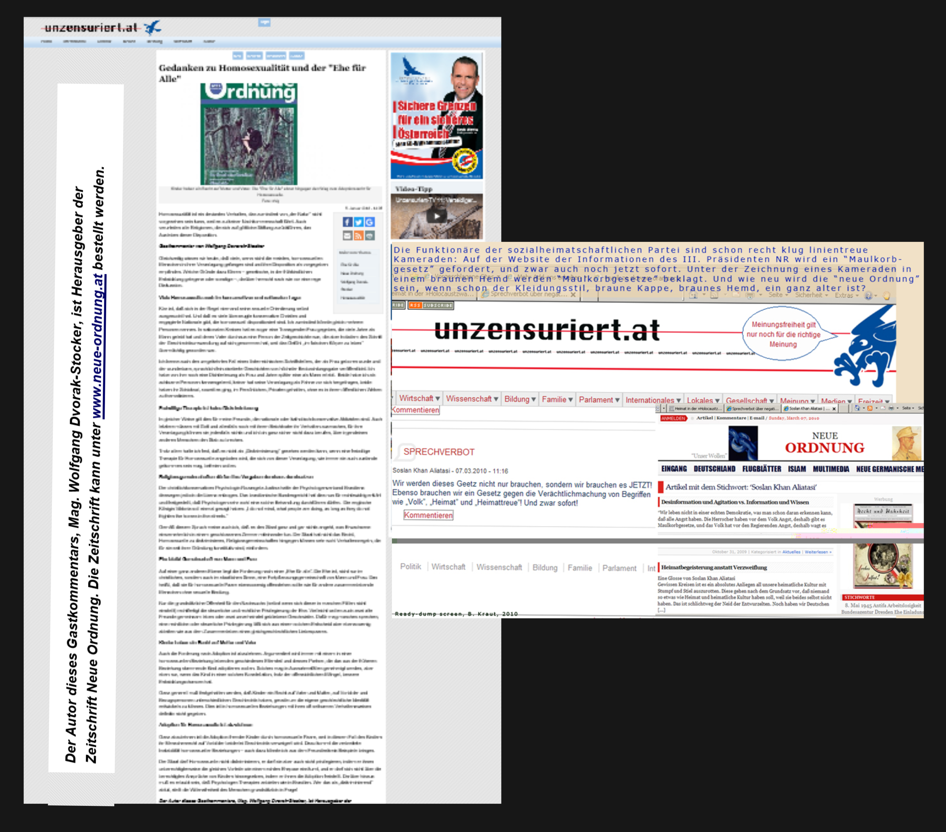 Wolfgang Dvorak-Stocker hat es nicht für FPÖ unzensuriert geschrieben, sondern für seine „Neue Ordnung“. Und FPÖ unzensuriert hat, wie in der Collage gelesen werden kann, es bloß übernommen.