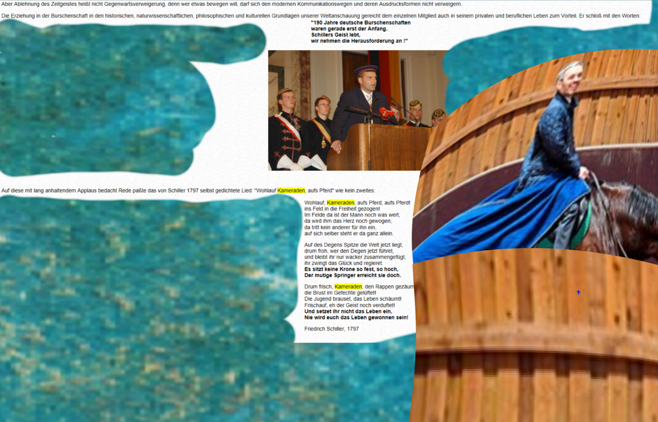 Innenminister erfüllt den hohen Auftrag der stefanischen Sendung: „Wohlauf, Kameraden, aufs Pferd, aufs Pferd!“ Nun darf erlebt werden, die Erfüllung Kommerse: Von Schiller zu Fest der „nationalen Sendung“, von der einst in der Wiener Hofburg Stefan sprach. Und auch ein Innenminister folgt der Sendung Befehl: „Wohlauf Kameraden, aufs Pferd, aufs Pferd!“ Und erfüllt von der Sendung ist ganz und gar ein Verteidigungsminister, für den es stefanische Pflicht ist, von Menschen als „Kameraden“ zu sprechen, ob es Männer, ob es Frauen, für ihn sind es, der Sendung auftragsgemäße Pflicht, „Kameraden“ … Teilen mit: Auf Tumblr teilen (Wird in neuem Fenster geöffnet) Tumblr Auf Pinterest teilen (Wird in neuem Fenster geöffnet) Pinterest Auf Facebook teilen (Wird in neuem Fenster geöffnet) Facebook Einen Link per E-Mail an einen Freund senden (Wird in neuem Fenster geöffnet) E-Mail Auf Reddit teilen (Wird in neuem Fenster geöffnet) Reddit Auf X teilen (Wird in neuem Fenster geöffnet) X Auf LinkedIn teilen (Wird in neuem Fenster geöffnet) LinkedIn Drucken (Wird in neuem Fenster geöffnet) Drucken Auf WhatsApp teilen (Wird in neuem Fenster geöffnet) WhatsApp Auf Telegram teilen (Wird in neuem Fenster geöffnet) Telegram Mehr Auf Pocket teilen (Wird in neuem Fenster geöffnet) Pocket Gefällt mir Wird geladen … Ähnliche Beiträge