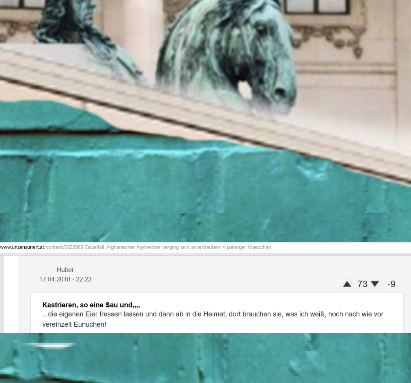 Wie in der Collage gelesen werden kann, geben auch andere Proben ihrer unbändigen Phantasie ab; einer Phantasie, an die jene nicht heranreicht, die vor langer Zeit beispielsweise die Bestrafungsorgienbücher des ihnen erschienenen Gottes schrieben, in einer Zeit, als unter Rechtsstaatlichkeit noch nichts verstanden wurde, oder, Rechtsstaatlichkeit nicht im heutigen Sinn zur Anwendung kam.