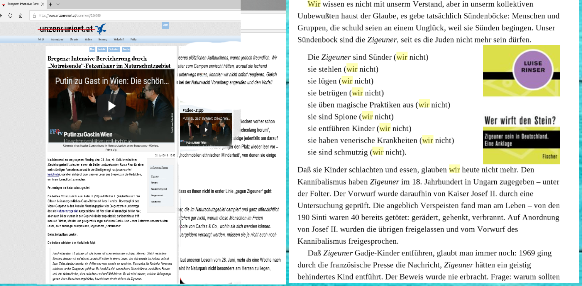 Ob es geglaubt wird oder nicht, das ist nicht das Wesentliche. Verbreitet wird es immer noch, auch das mit dem Kannibalismus, wie von dem Blondy auf der gesinnungsgemäß zensurierten Website der identitären Regierungspartei in Österreich, im Juni 18, 33 Jahre sind seit der Erstveröffentlichung der Anklage von Luise Rinner vergangen. Verbreitet wird es immer noch, das ist das Entscheidende, und trägt zur lebensbedrohlichen Lage dieser Menschen bei – eben erst wieder ein Mord und Verletzte, diesmal in Lwiw …
