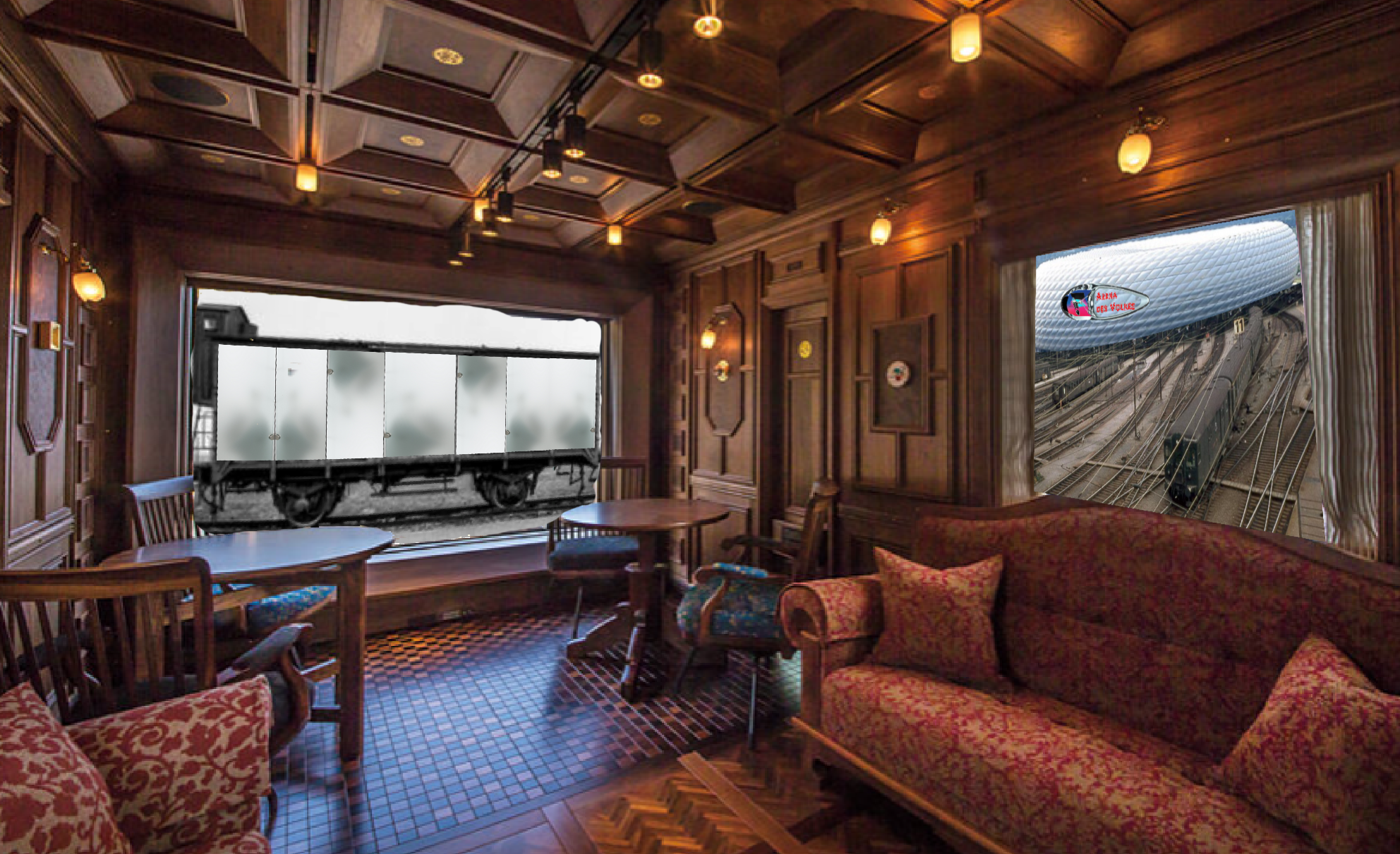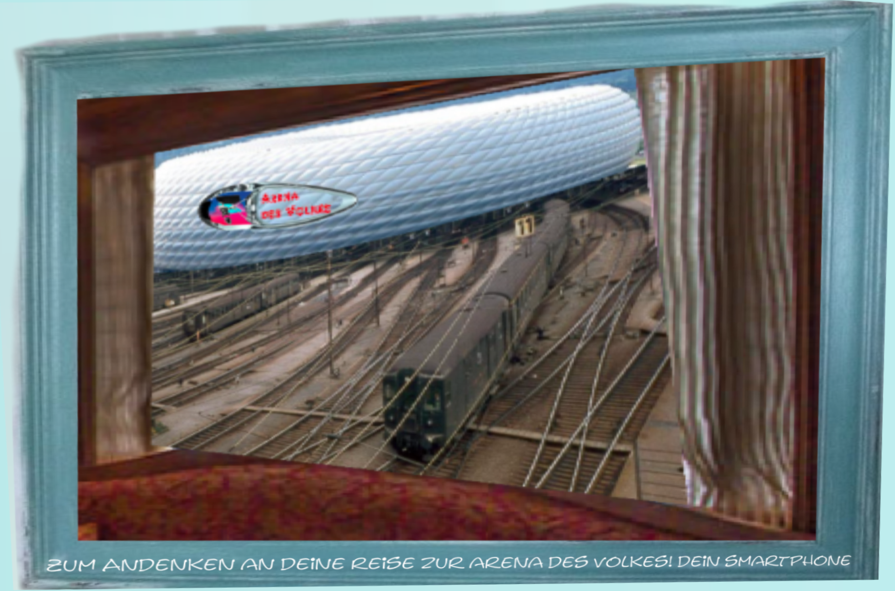 Schon die Anreise zur Arena des Volkes müßte nicht nur eine luxuriös bequeme, sondern vor allem der Garantie des freien und ungehinderten Fotographierens und Videotierens unterworfen sein. Dafür eignet sich der Individualverkehr nicht. Hervorragend dafür die kollektive Anreise in Zügen. Es würden je zwei Züge in gleicher Geschwindigkeit parallel zueinander geführt werden, in dem einen Zug der Container mit transparenten Wänden die Menschen, die in das Lager im Stadion deportiert werden, im anderen Zug mit Waggons der edelsten Ausstattung die Schaulustigen mit Smartphonebestpositionsgarantie zu ihren Rängen mit dem schönsten und vor allem uneingeschränkten Panorama auf …