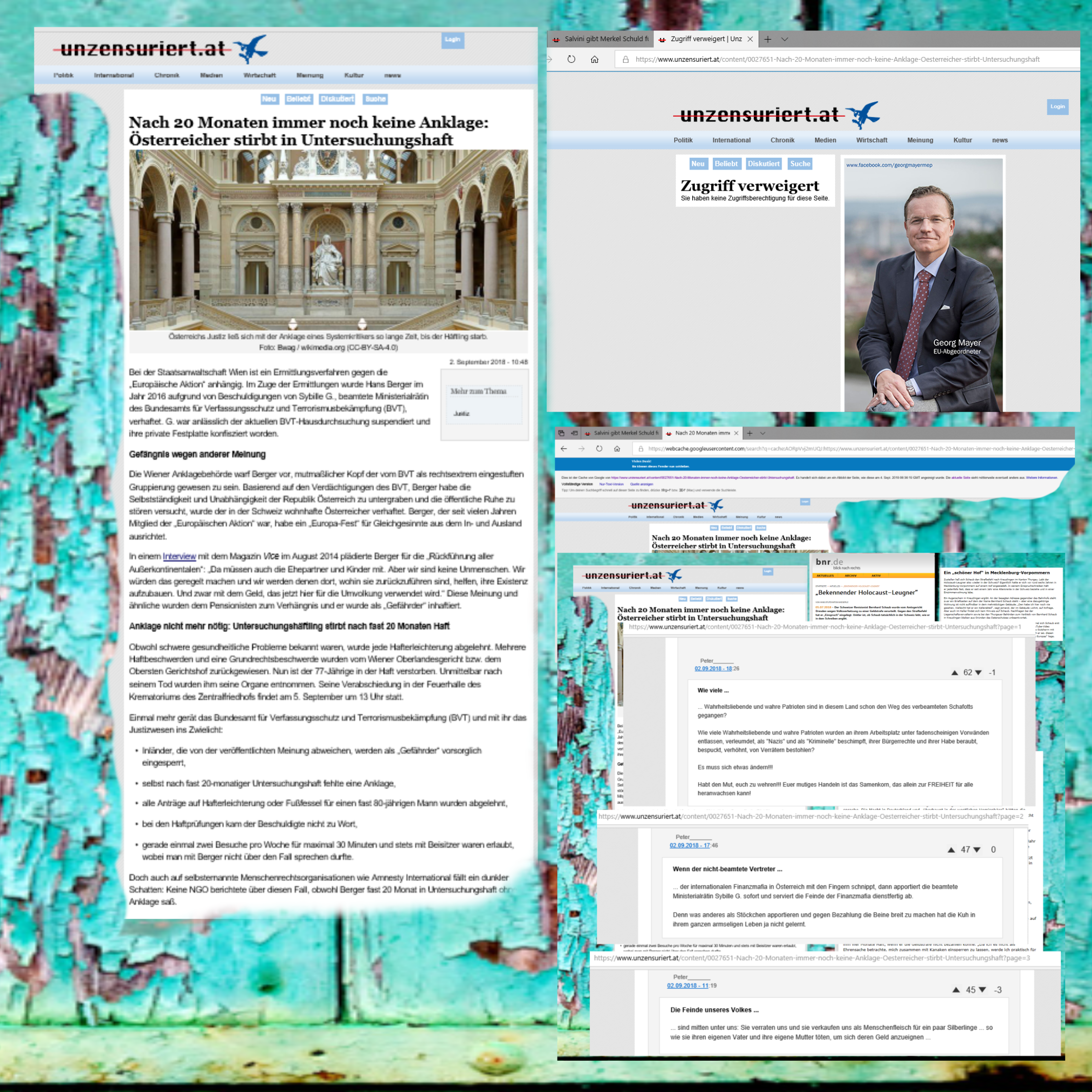 Sie werden sich vielleicht fragen, weshalb ich Ihnen diese Nachrichten über diese gesinnungsgemäß zensurierte Website und deren Kommentarstaffel schicke. Es ist wohl die Sehnsucht, in Ihrem Land, also in Österreich, leben zu wollen, wo es das alles nicht, das einen Menschen, kurz gesagt, nur mit Scham erfüllen kann.“