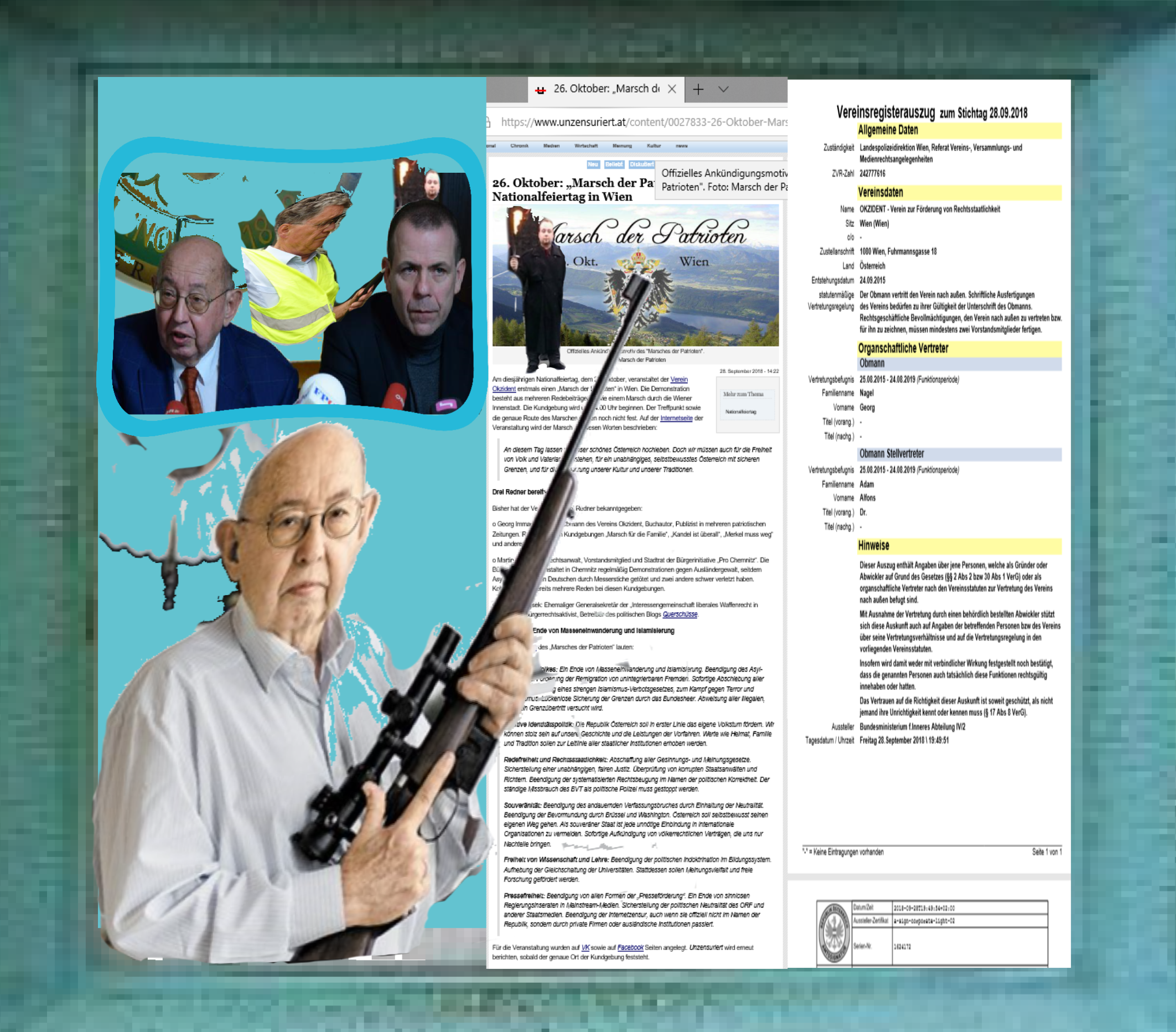 Am sogenannten Nationalfeiertag, 26.10.18, soll es einen „Marsch der Patrioten“ geben, in der Hauptstadt, der Bezirkshauptmannschaft des niedertrachtigen Gehorsams. Ist in dem werbenden Kommentar der gesinnungsgemäß zensurierten Website am 28.09.18 zu lesen.