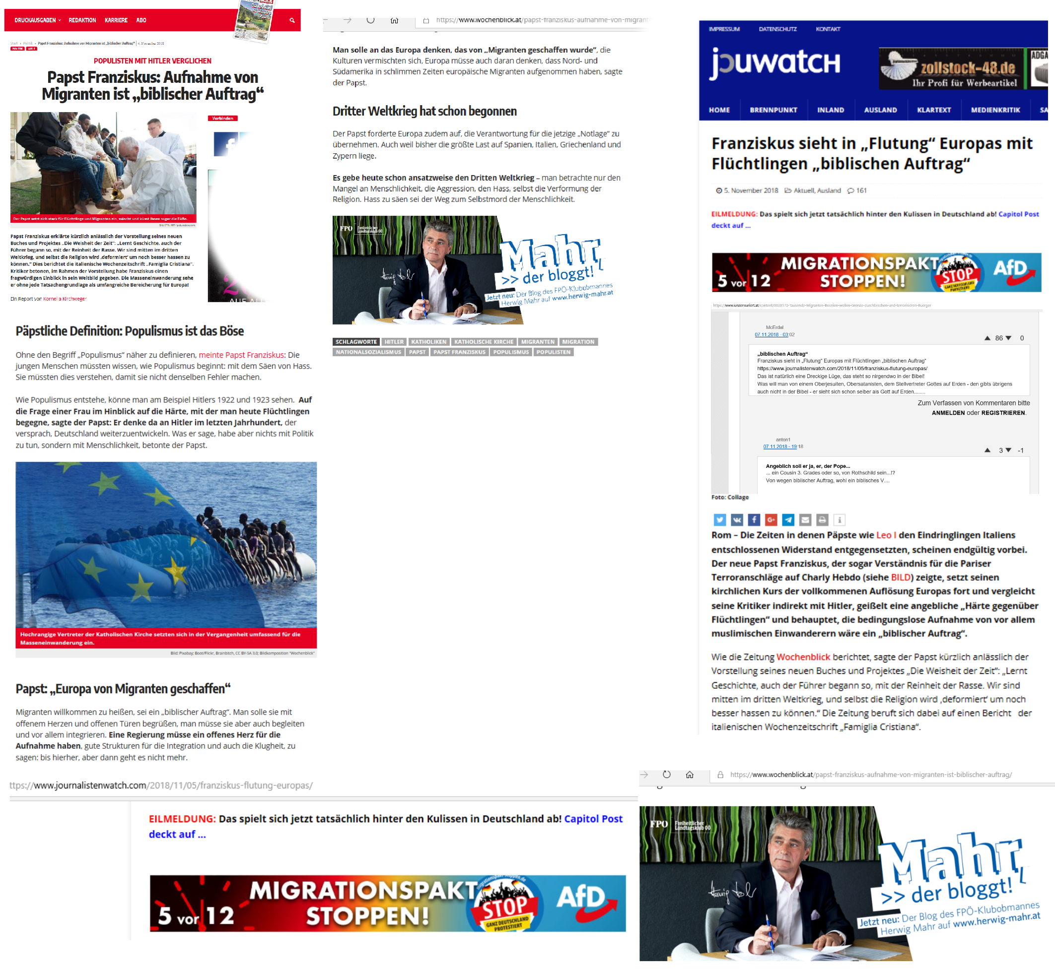 „Franziskus sieht in ‚Flutung‘ Europas mit Flüchtlingen ‚biblischen Auftrag‘ https://www.jou%5B…%5Dwatch.com/2018/11/05/franziskus-flutung-europas/ Das ist natürlich eine Dreckige Lüge, das steht so nirgendwo in der Bibel! Was will man von einem Oberjesuiten, Obersatanisten, dem Stellvertreter Gottes auf Erden – den gibts übrigens auch nicht in der Bibel – er sieht sich schon selber als Gott auf Erden……..“