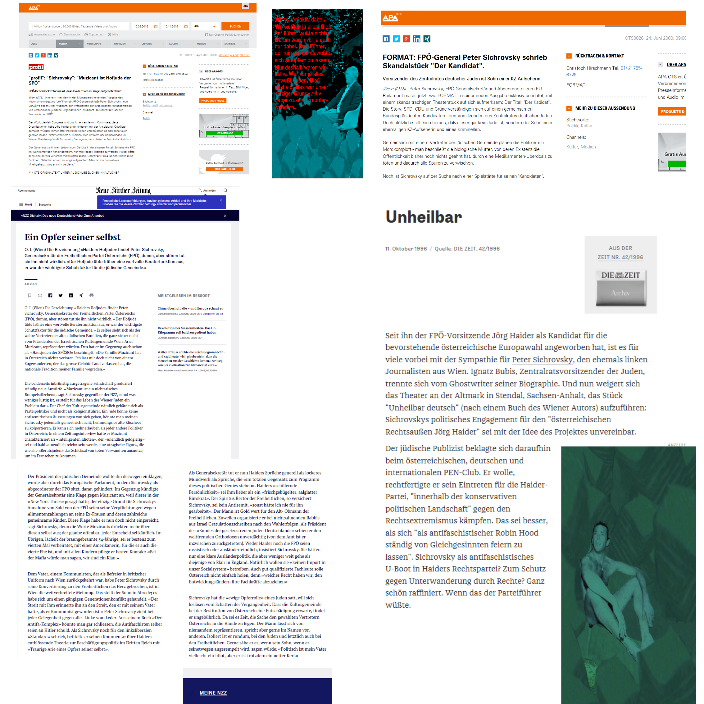 Manche werden vielleicht meinen, ob denn eine Unterwanderung je erfolgreich sein kann. Hat nicht eben Peter Sichrovsky, im Erinnerungsnovember 18, selbstkritisch im Fernsehen vom Scheitern gesprochen. Da ist er zu selbstkritisch. Immerhin hat der „Parteiführer“ bis zu seinem Tod nichts davon gewußt, daß er, Sichrovsky, zur „Unterwanderung“ nur … Das ist doch eine Unterwanderungserfolgsgeschichte. Spätestens seit dem Bericht in einer ebenfalls Qualitätszeitung wußten das alle, nur einer nicht, der Führer …