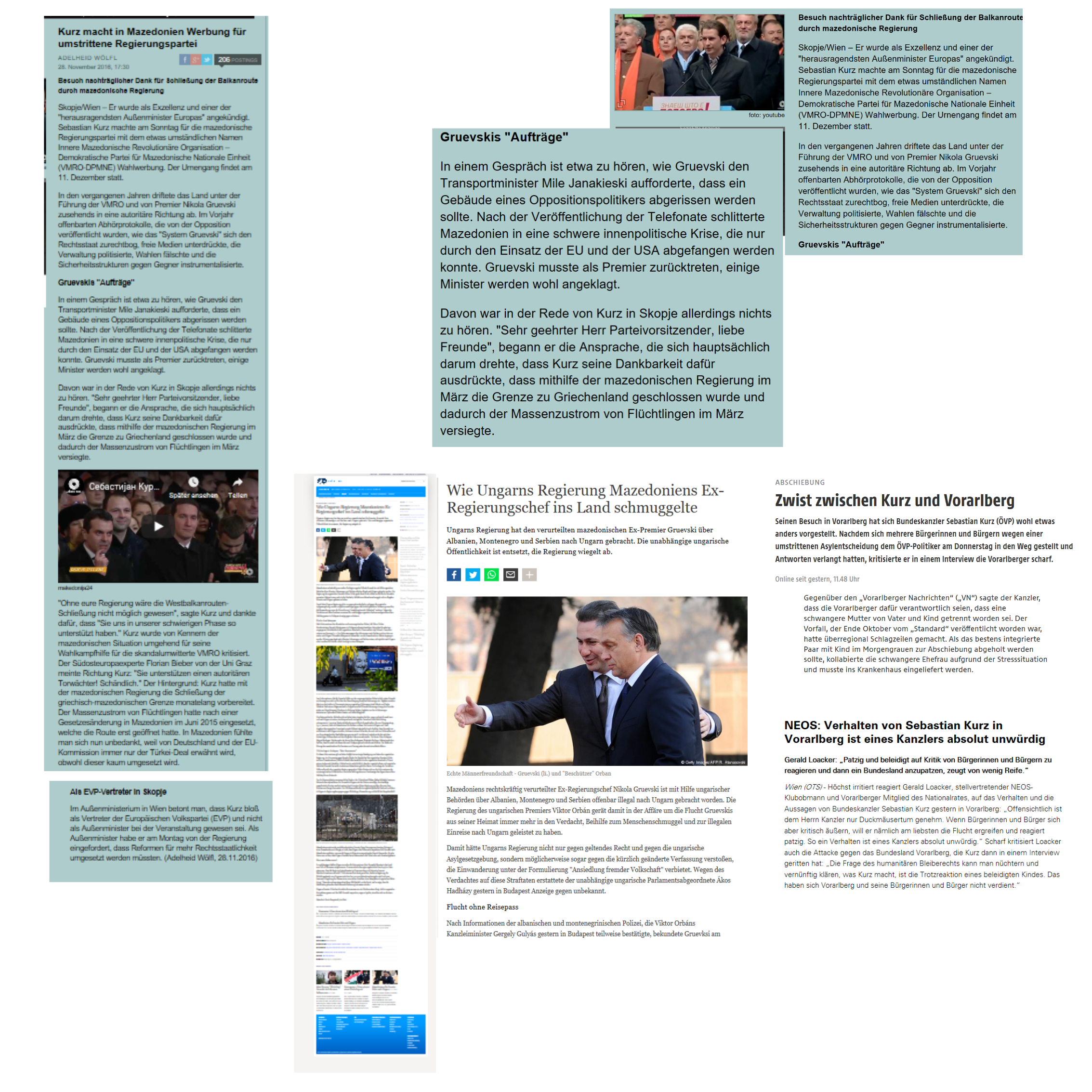 Diesem vom Alter her doch noch einigermaßen jungen Mann sind die Bürgerinnen nicht Vorbild, die Bürger als Vorbild flieht er. Wohin flieht er? Wohin floh er schon vor langer Zeit? Zum Autoritären. In diesem hat er sich festgesetzt. Das Autoritäre ist sein Vorbild, dem er Ebenbild sein will. Das mag abstrakt klingen. Aber alles Abstrakte kann auch an handfesten Beispielen gezeigt werden. Beispielsweise ist es noch nicht lange her, daß der zurzeitige Bundeskanzler in Österreich „Wahlwerbung“ machte – für Nikola Gruevski …