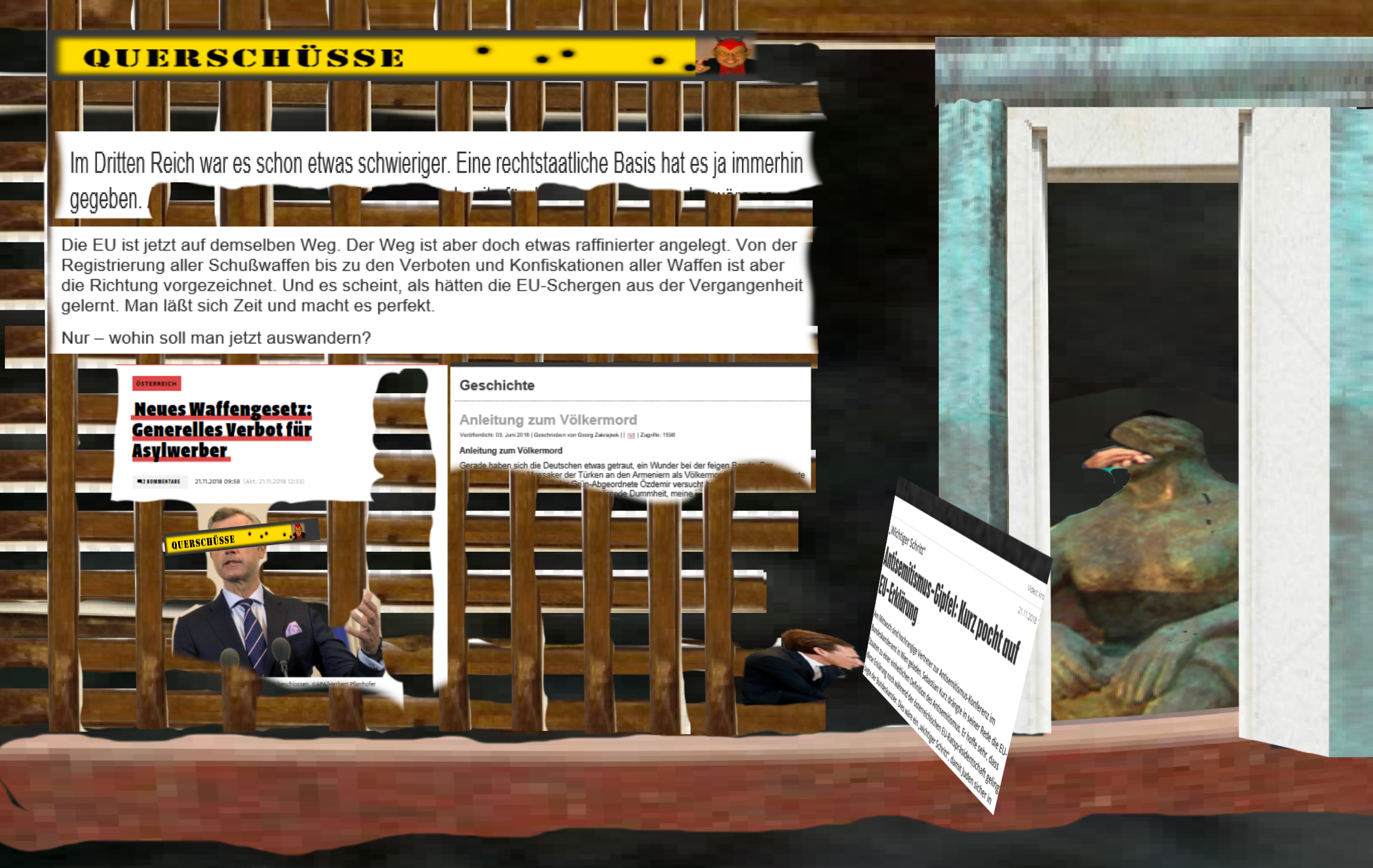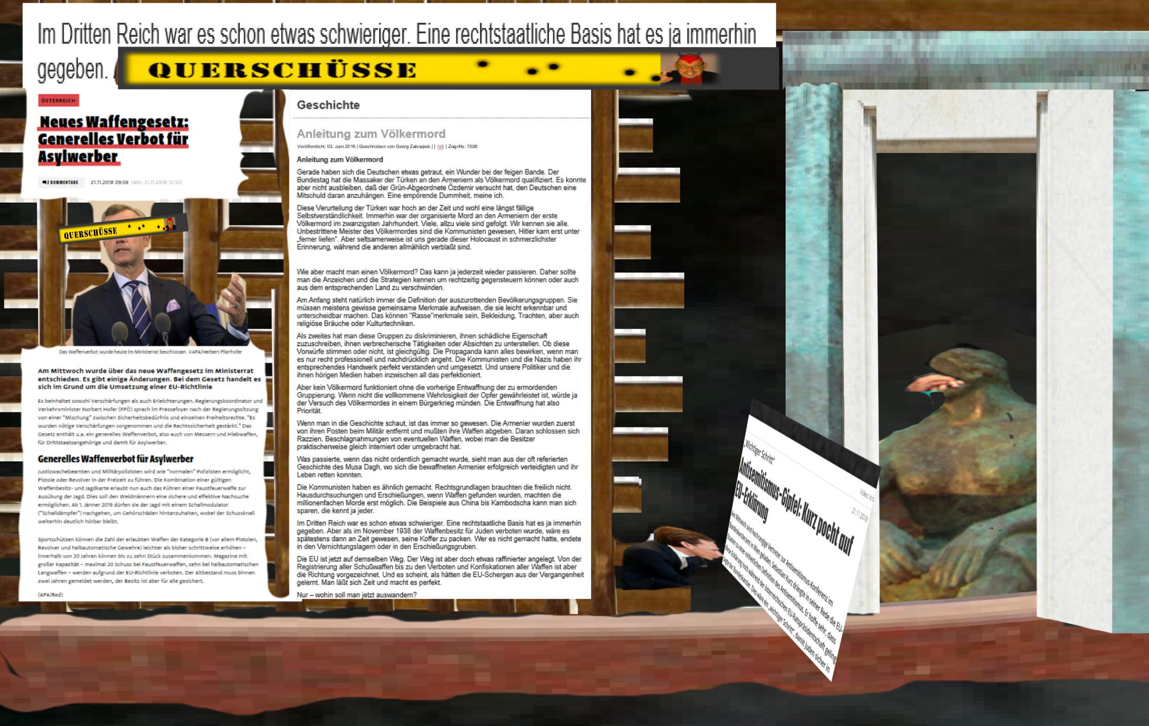 Vielleicht rufen Sie auch aus: Das ist der Gipfel! „Antisemitismus“, „Waffengesetz“ und „Denkmal für Himmler, Bormann, Fegelein“ in einer Überschrift zu verklammern.